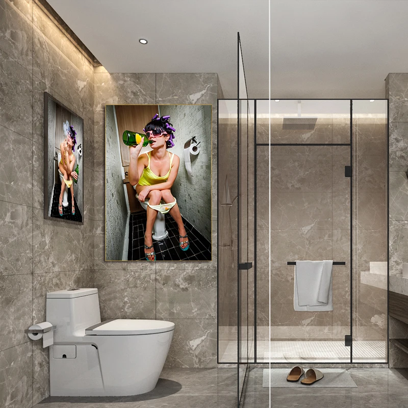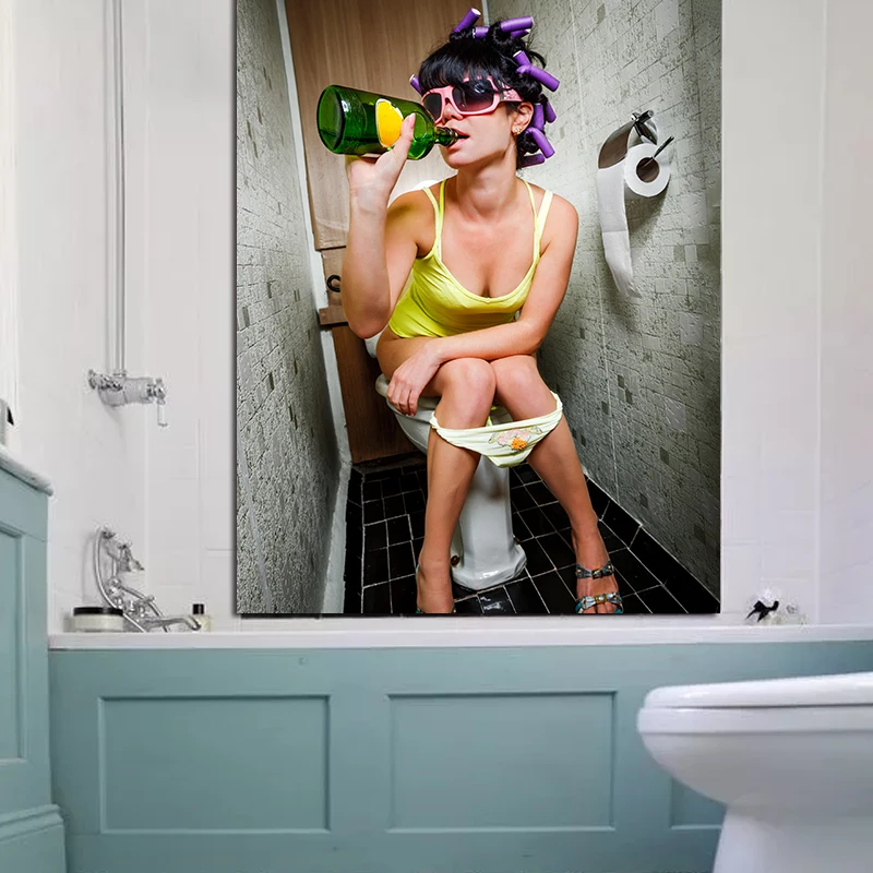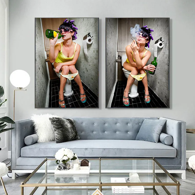Современный плакат в ванную комнату сексуальная женщина курить и питьевой Туалет Печать на холсте картина на стену украшение для душа