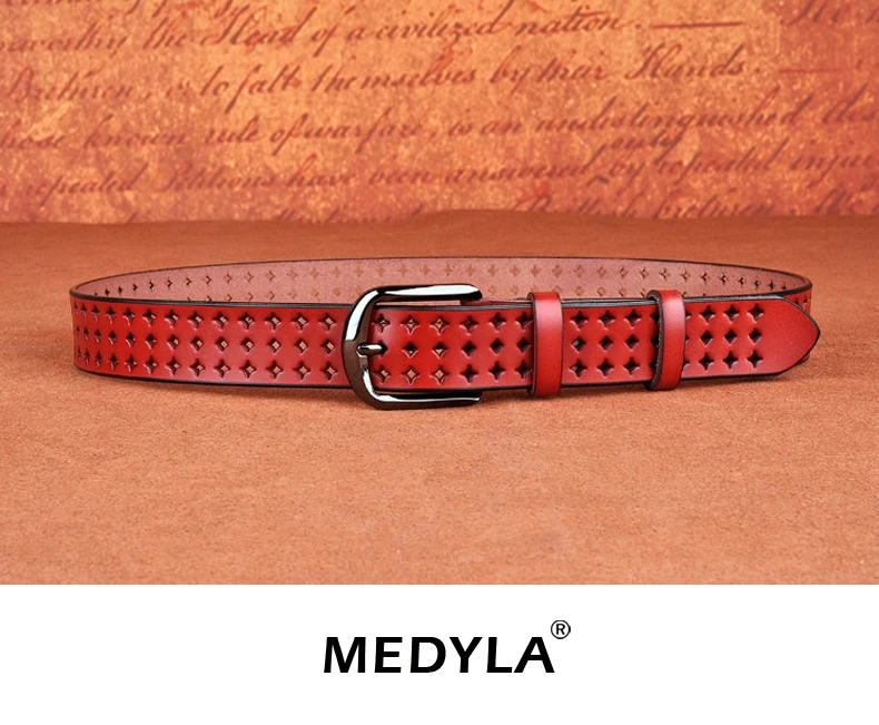 Ремень MEDYLA из натуральной кожи Женский, широкий пояс с ажурным узором, подходит к любой одежде, L181