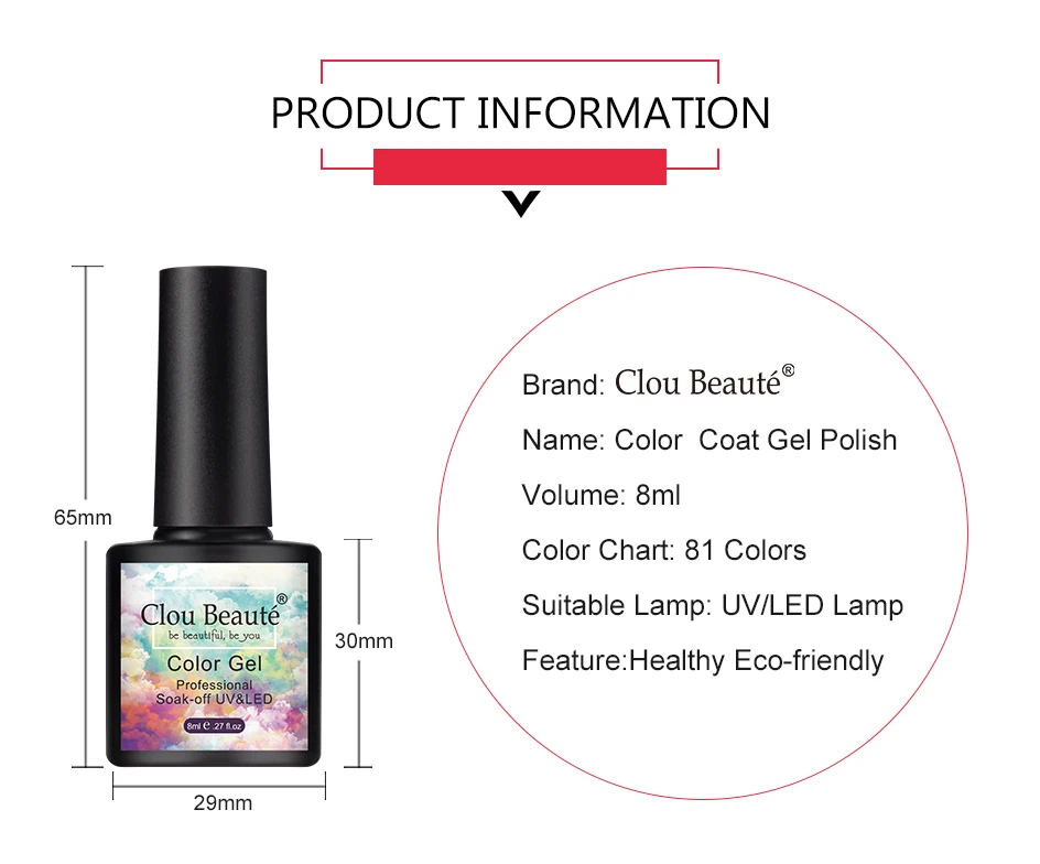Название бренда: Clou BeauteМатериалы: УФ-изгибаемая смолаОбъем: 8 мл/0,27 фл. УнцийВес нетто: 20 гСертификация: MSDS, SGSИнструменты для отверждения: УФ-лампа, светодиодный светильник, УФ/светодиодный CCFL лампа