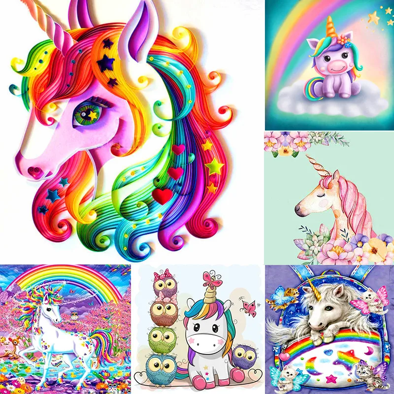 Алмазная 5D мозаика сделай сам с мультяшным единорогом, Набор для в...
