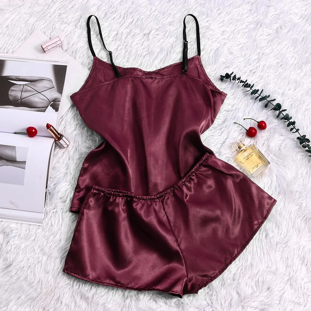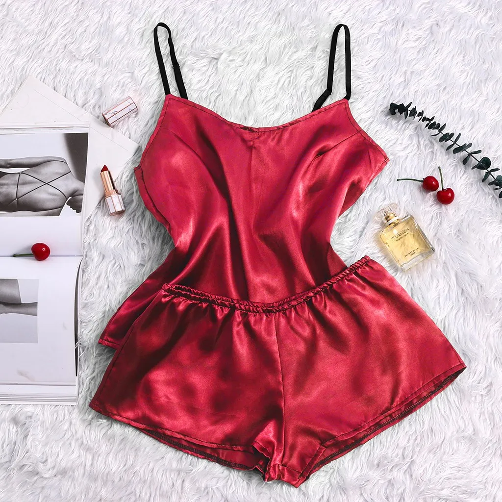 Пикантная Пижама для женщин 2020, комплекты одежды для сна, атласная шелковая летняя ночная рубашка, женские топы, брюки, костюмы, женское нижнее белье J60