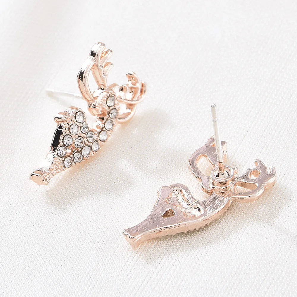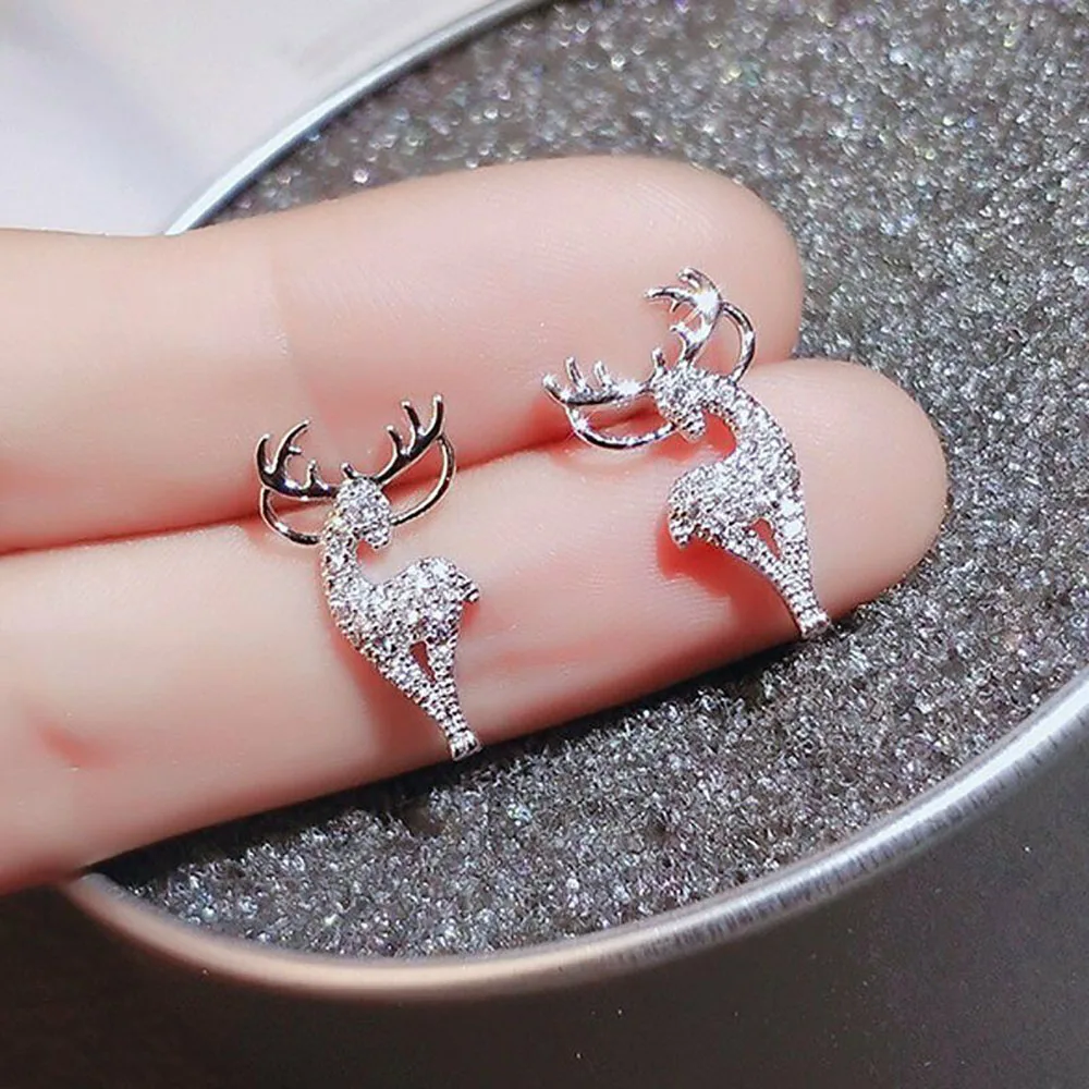 Новые рождественские украшения стильный с принтом рождественского оленя и надписью, с украшением в виде кристаллов серьги-гвоздики в виде оленя для женщин, модное ювелирное изделие, подарок на Рождество, украшения