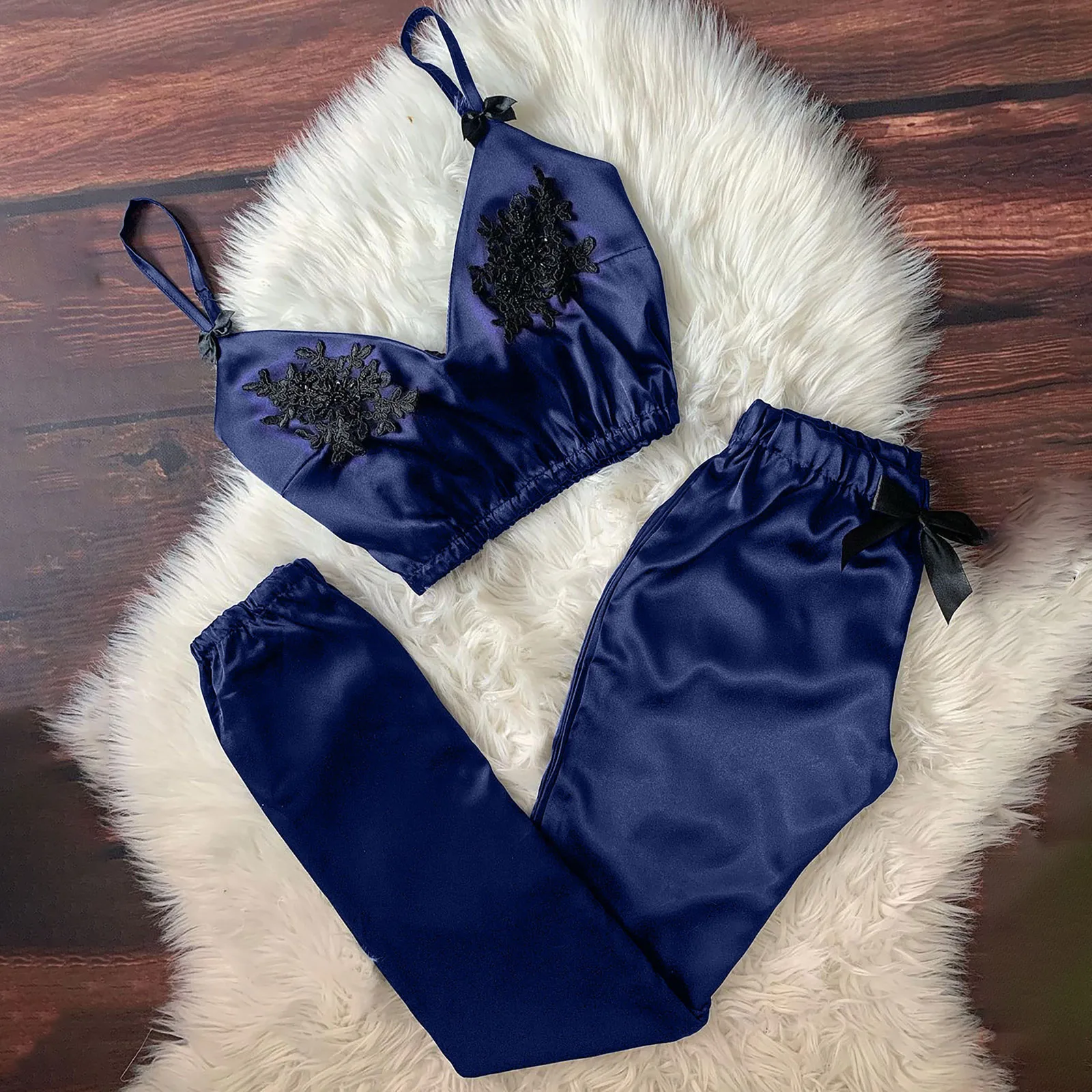 Для женщин с v-образным вырезом, кружевной сексуальный пятно камзол пижамы брюки с бантиком, комплект очень эластичным поясом Для женщин пижамы pijama E1