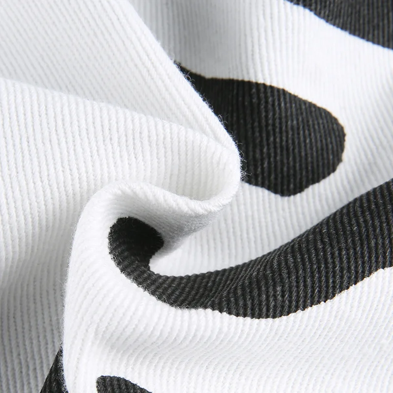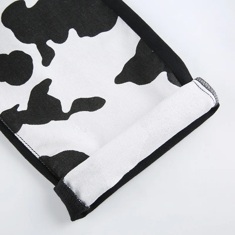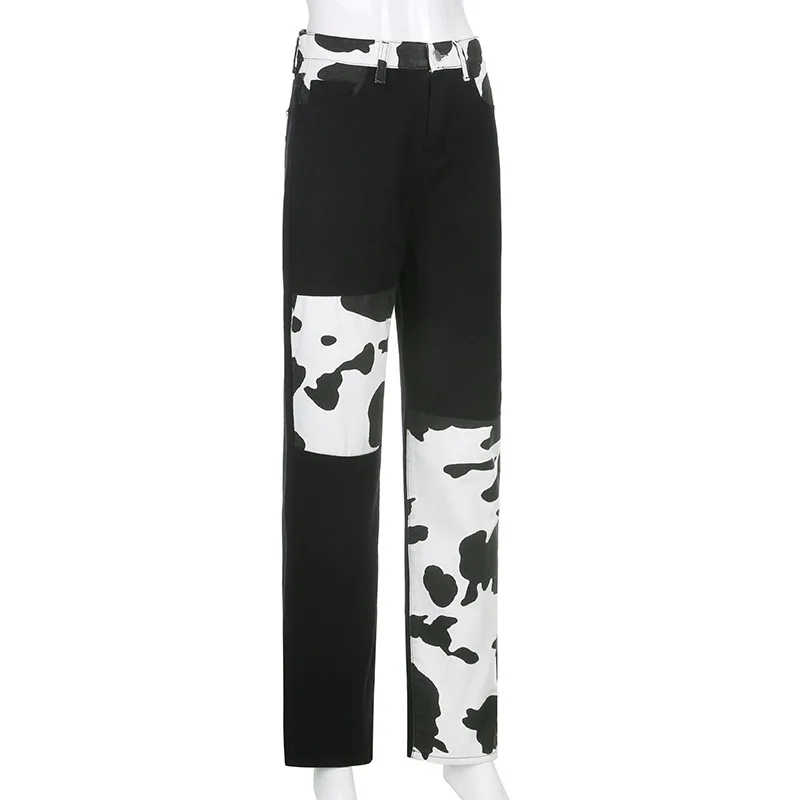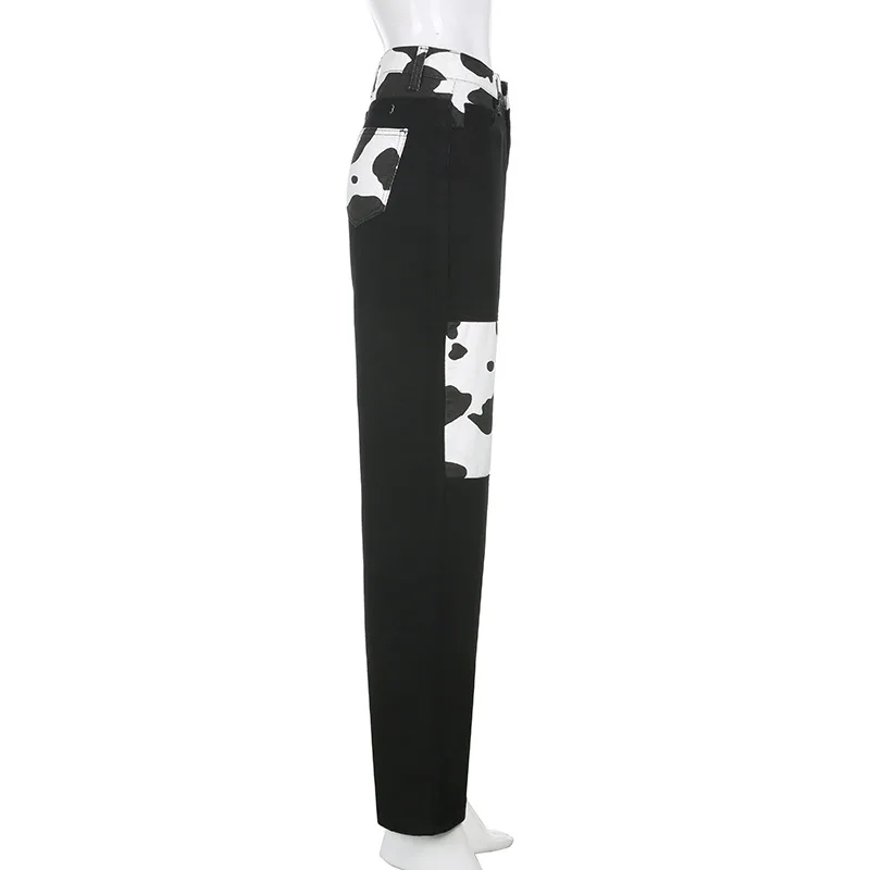 Джинсы женские джинсовые составного кроя с высокой талией и коровьим принтом