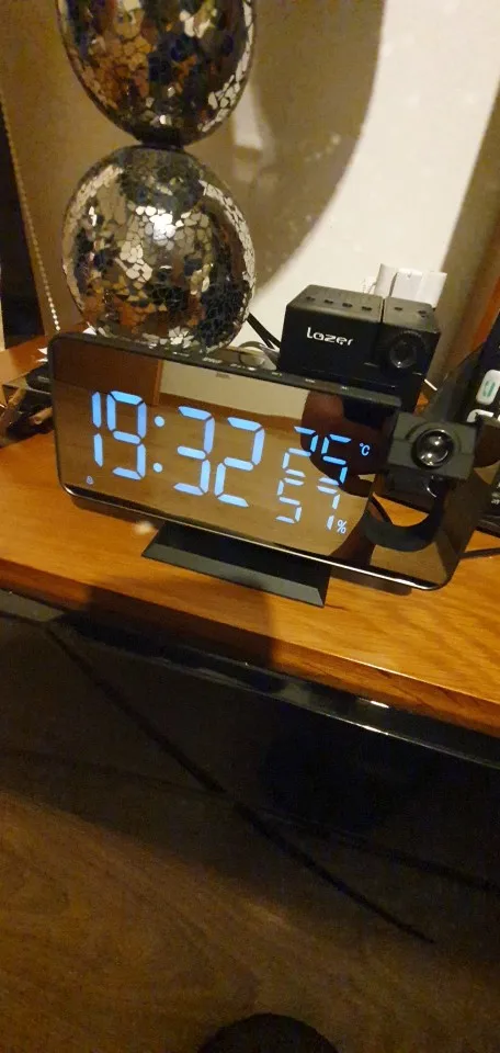 Светодиодный цифровой будильник 7,5 дюйма, радио проекция с температурой и влажностью, ЖК-дисплей, зеркальные часы, прикроватный дисплей времени