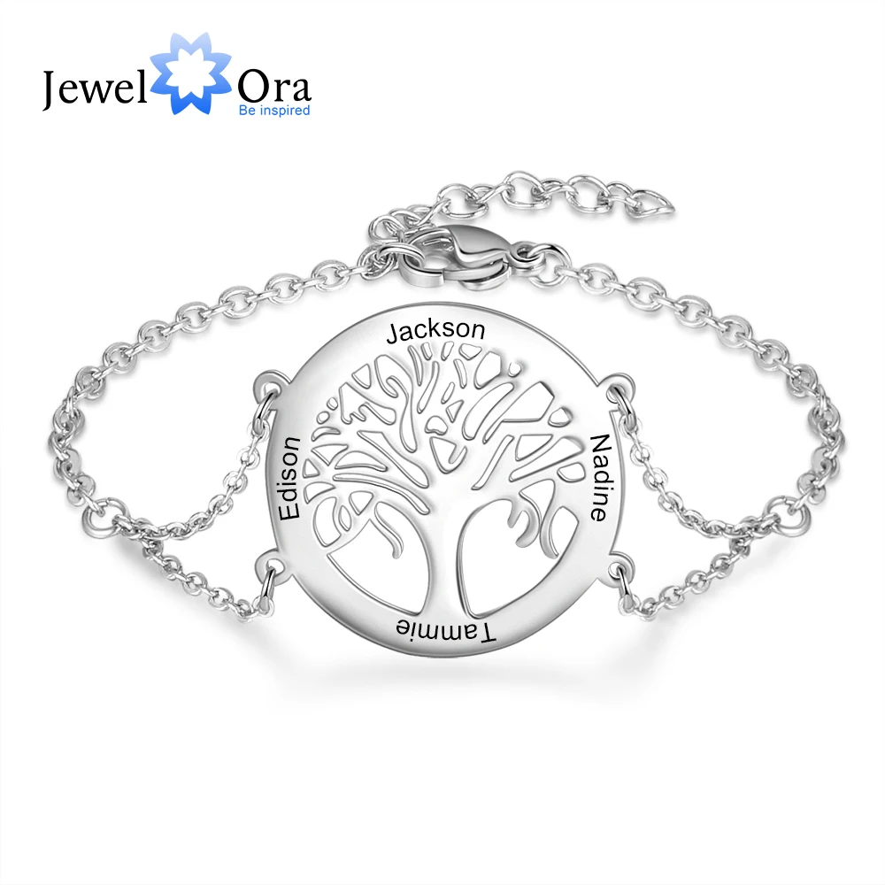 Персонализированные Древо жизни Браслеты с гравировкой имени Нержавеющаясталь пользовательские Семья браслеты с деревом Браслеты для Для женщин подарок на Новый год