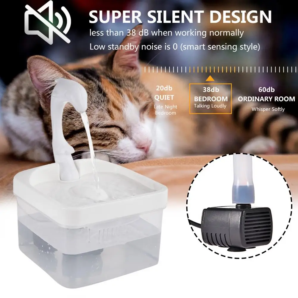 Кошачий фонтан для домашних животных, автоматический диспенсер для воды, 2 л, светодиодный синий свет, питание от USB, фильтр для кошек, собак, домашних животных