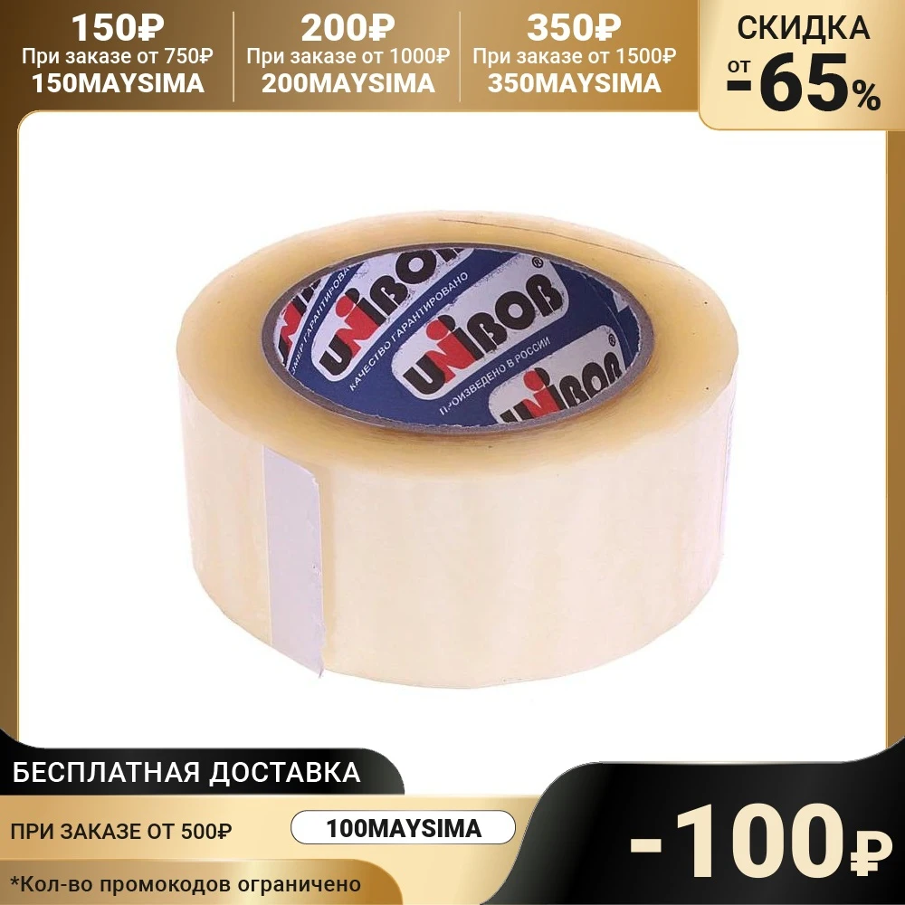 Клейкая лента UNIBOB 48мм*66м 45 мкм, прозрачная, индивидуальная уп...