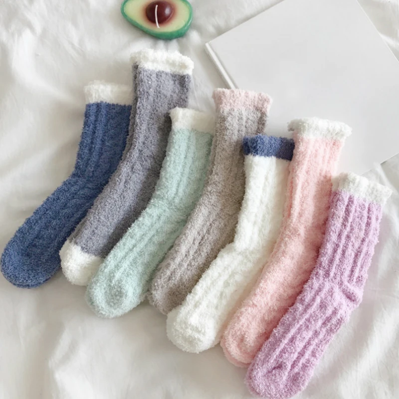 Теплые носки, женские Зимние коралловые флисовые двухцветные эласти...