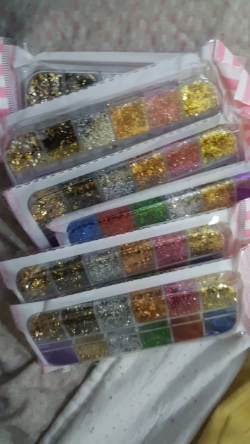 Классные блёстки, рекомендую. Бокс очень удобный, каждая ячейка открывается отдельно. Посылка не отслеживалась. Пришла примерно через месяц в РБ. Продавца рекомендую, буду ещё заказывать.