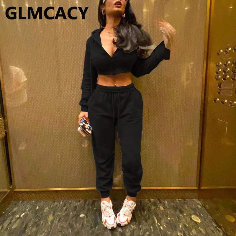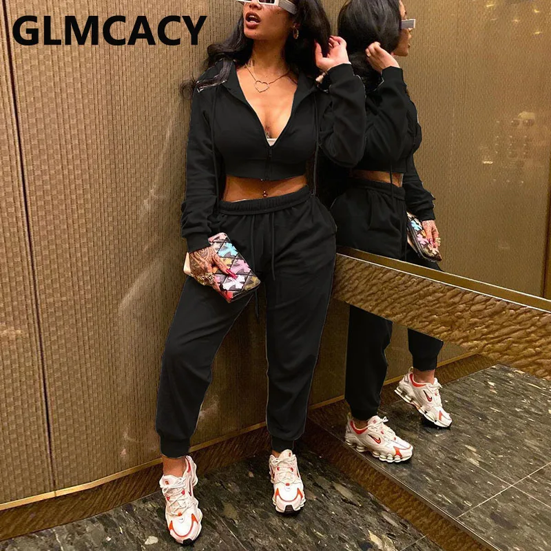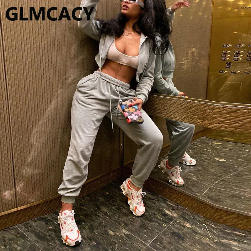 Женские шикарные спортивные костюмы в стиле хип-хоп, укороченный топ на молнии, толстовки и повседневные брюки, комплект