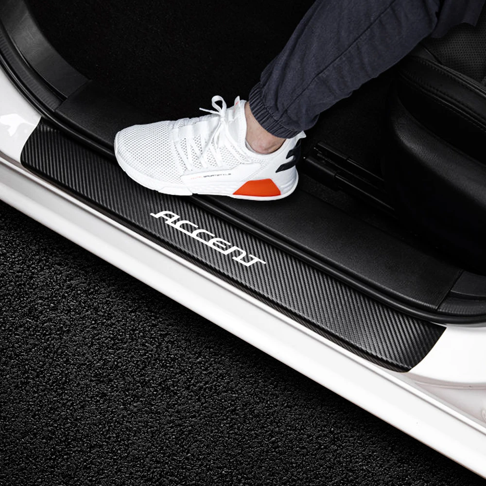 4 шт., наклейки на дверные пороги из углеродного волокна для hyunda...