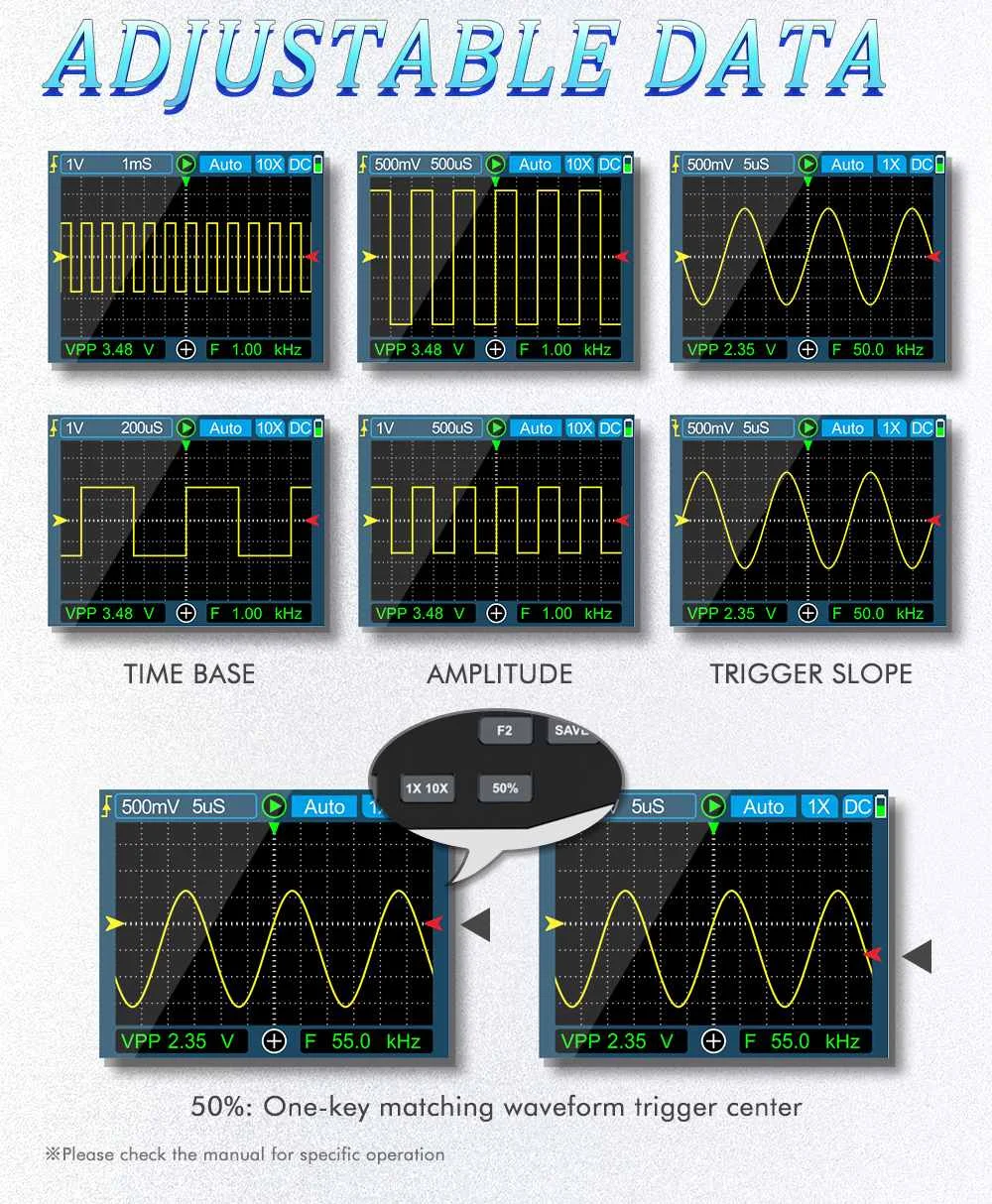 Получил осциллограф, упакован замечательно! Мешочек для хранения, щуп с делителем, шнур зарядки. Все отлично! НО сам осциллограф похоже БУ у него экран потертый в царапинах, фото экрана прилагаю. Мое личное мнение: как правило на экранах есть защитная пленка, в моем случае ее сняли до отправки и явно оттирали его весьма не аккуратно. Понимаю, что на работу девайса это не скажется, но я покупал НОВУЮ вещь, в противном случае цена должна быть ниже. Хотел поставить две звезды.... ну да ладно.