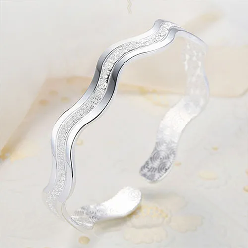 Женский Блестящий Браслет-манжета из стерлингового серебра 925 пробы, Регулируемый подарок