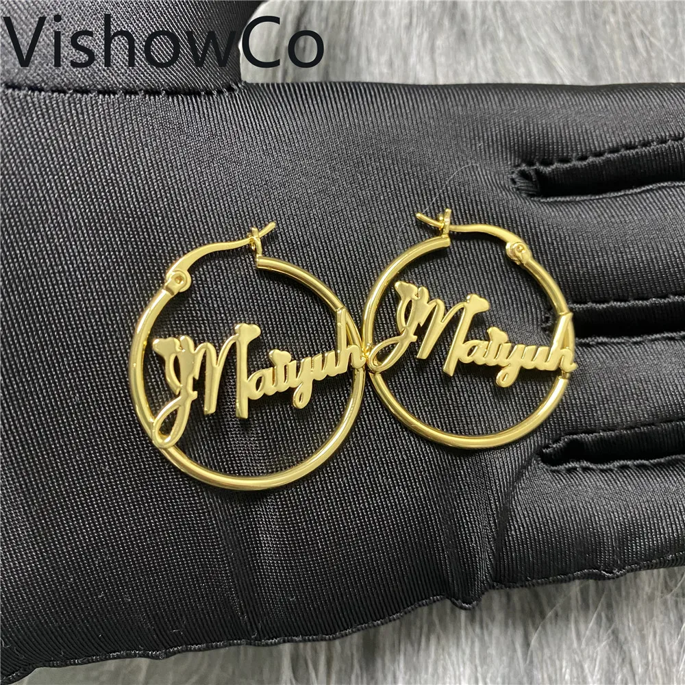 Висячие серьги с именем VishowCo, персонализированные круглые серьг...