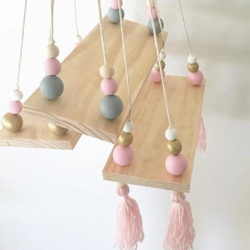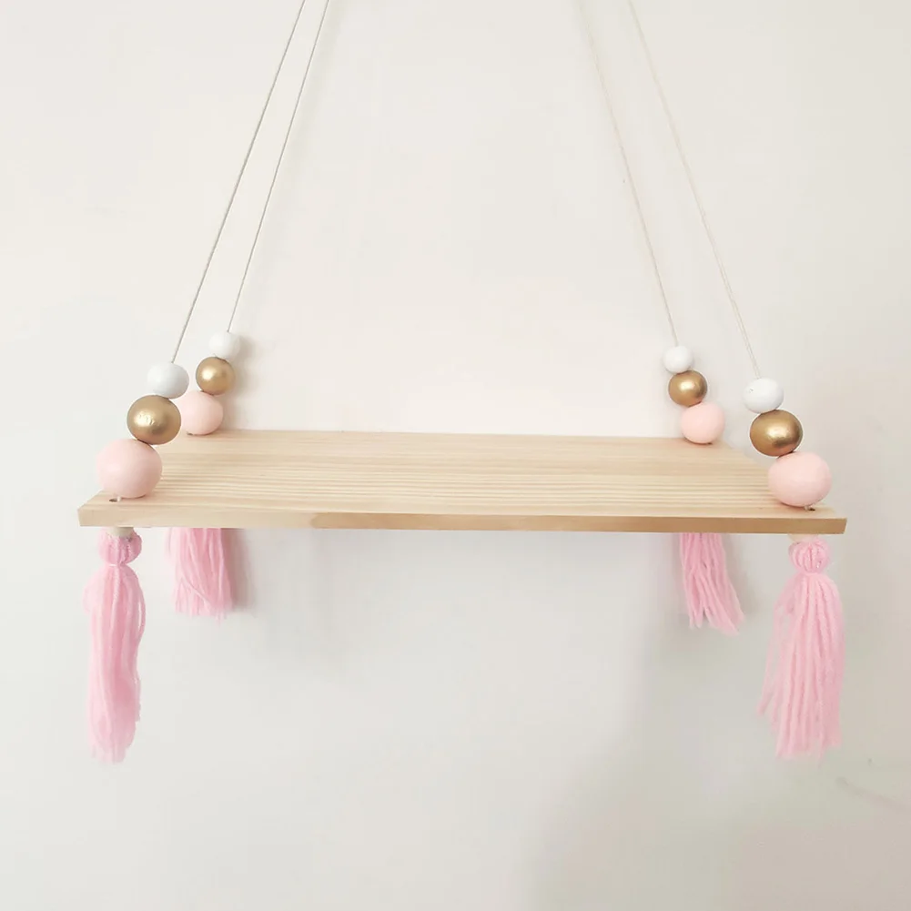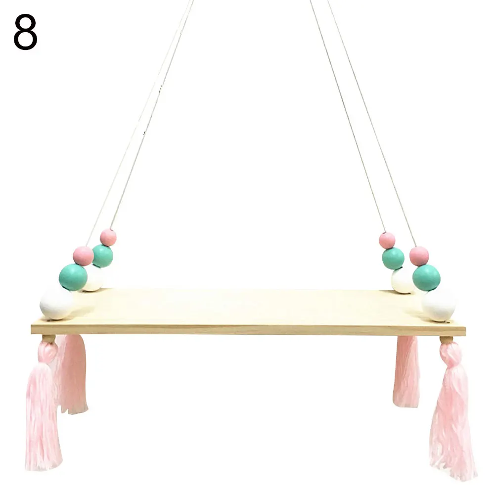 Настенные украшения для спальни, подвесные бусины с кисточками, реквизит, украшение для детской комнаты, деревянная доска, полка для хранения, фото