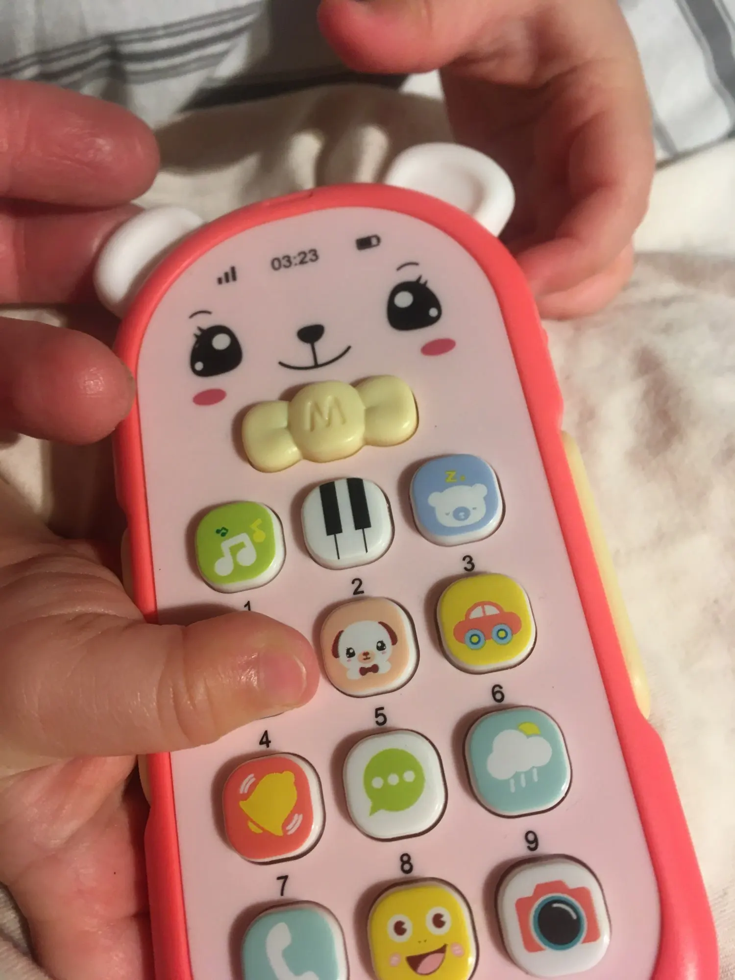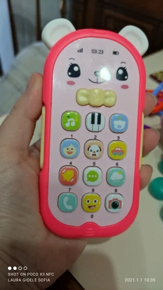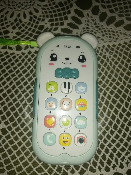 спасибо огромноесуперский мобильник,ушки светятся разными цветами,можно их погрызть,каждая кнопка имеет несколько звуков.мой внучок 10месяцев был в восторге