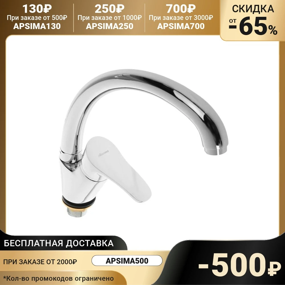 Смеситель для кухни Accoona A5061, однорычажный, силумин, хром 3114289