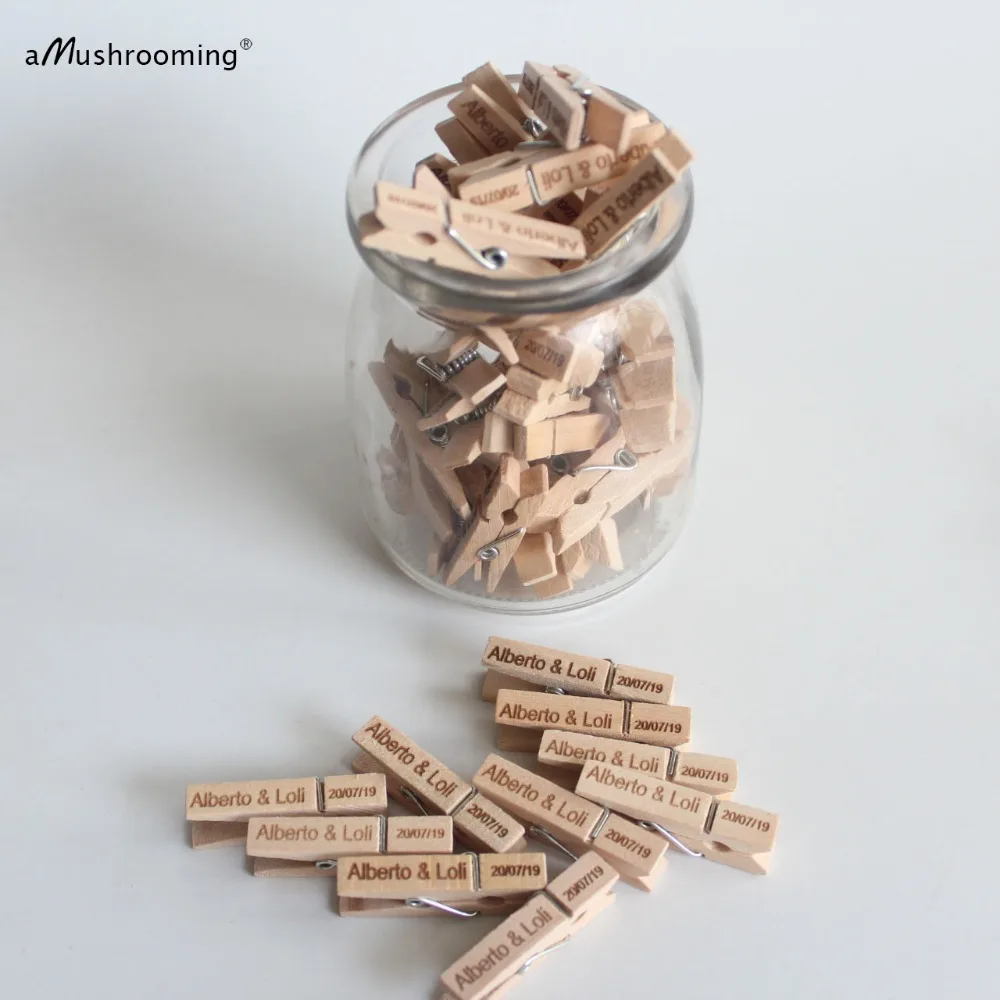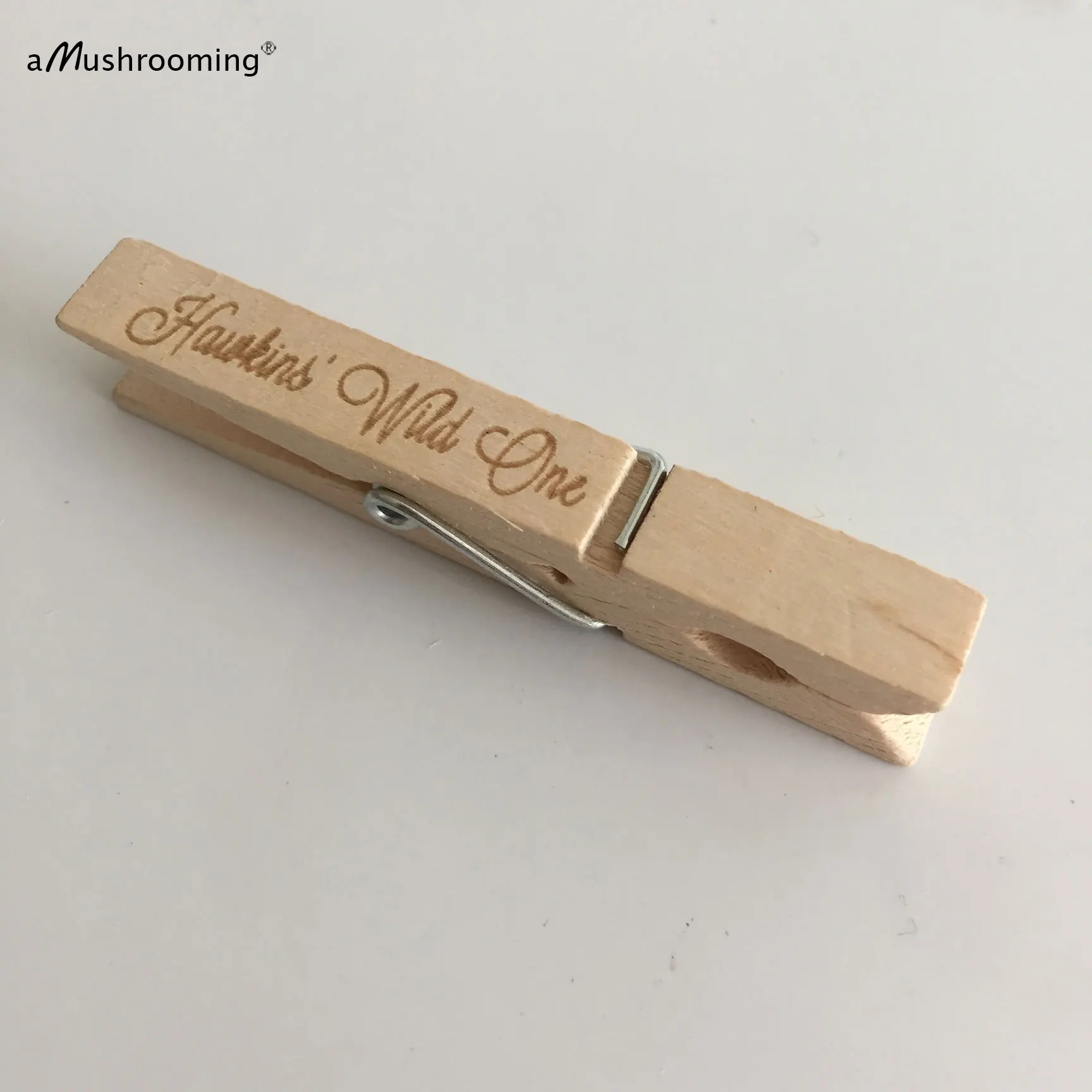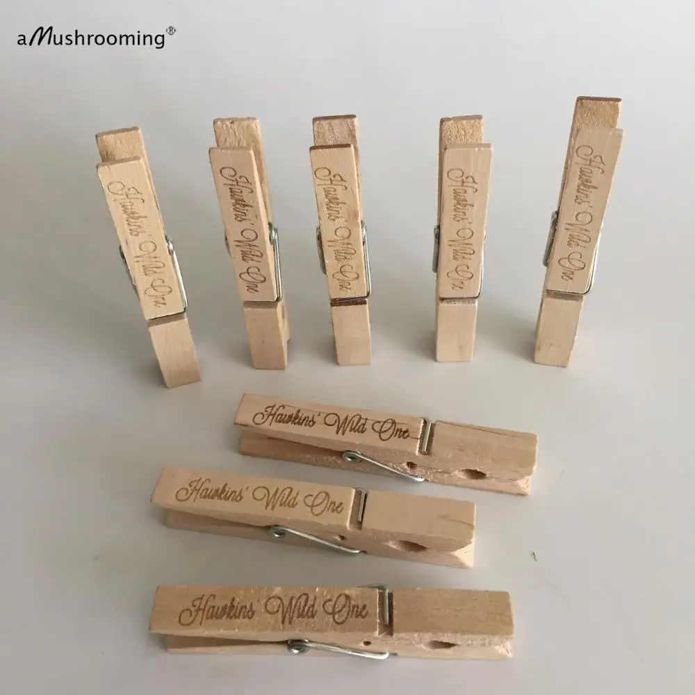 X100 персонализированные Мини прищепки Дикие один день рождения душ имя украшенные деревянные ремесленные колышки с вашим именем и датой фото Настенный декор