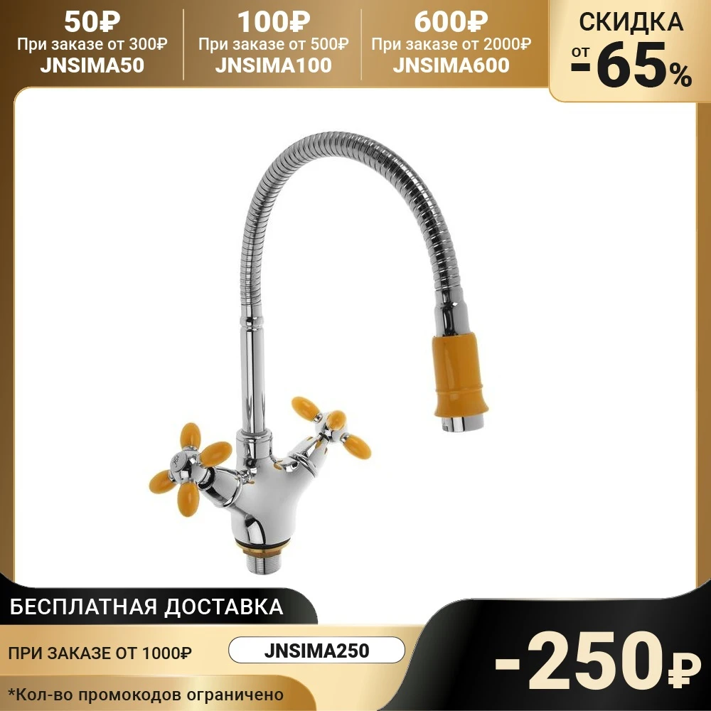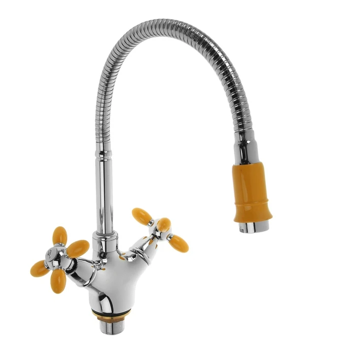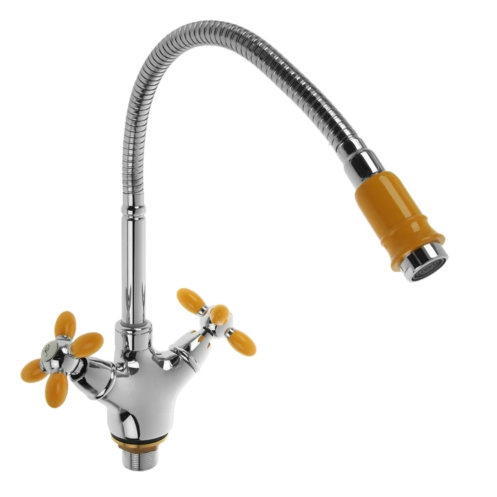 Смеситель для кухни Accoona A4882H, двухвентильный, с гибким изливом, силумин, желтый/хром 3114451