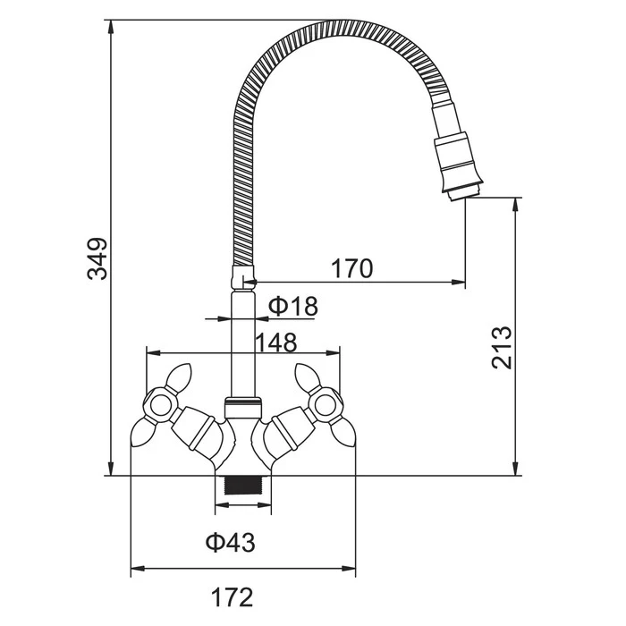 Cмеситель для кухни Accoona A4871, двухвентильный, гибкий излив, си...