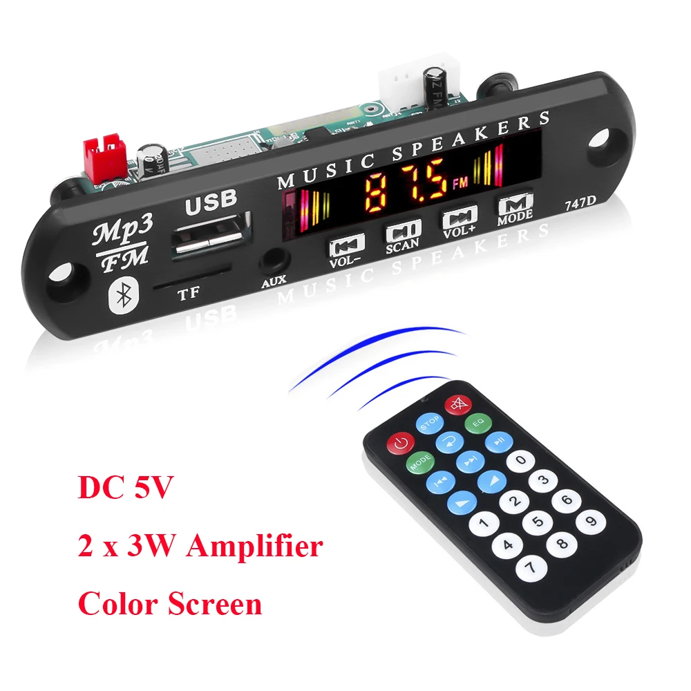 MP3 плеер Bluetooth приемник модуль MP3 WMA декодер плата беспроводной 5,0 USB TF FM радио 12V музыка аудио автомобиля комплект 2x3 W усилительОписание: