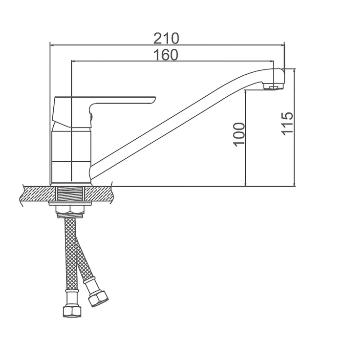 Cмеситель для кухни Accoona A4871, двухвентильный, гибкий излив, си...