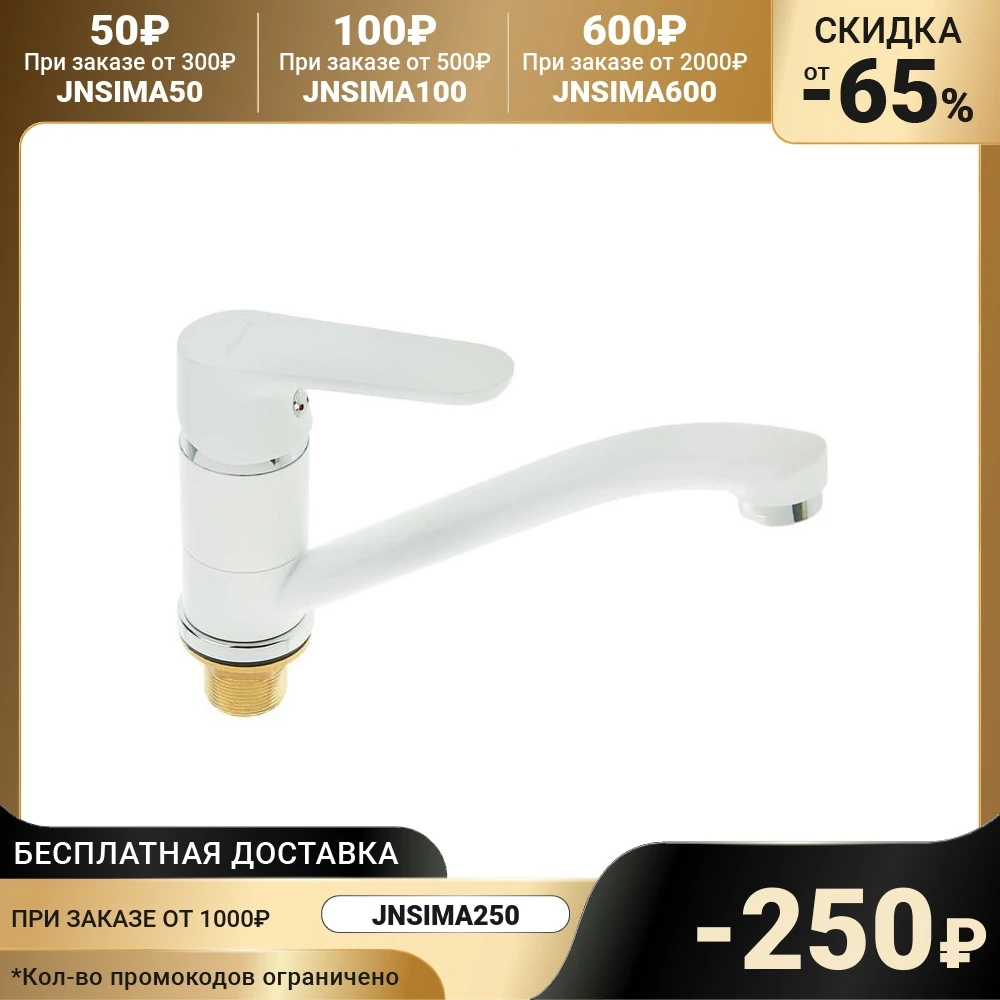 Cмеситель для кухни Accoona A4266G, однорычажный, средний излив, с гайкой, силумин, белый 3114307