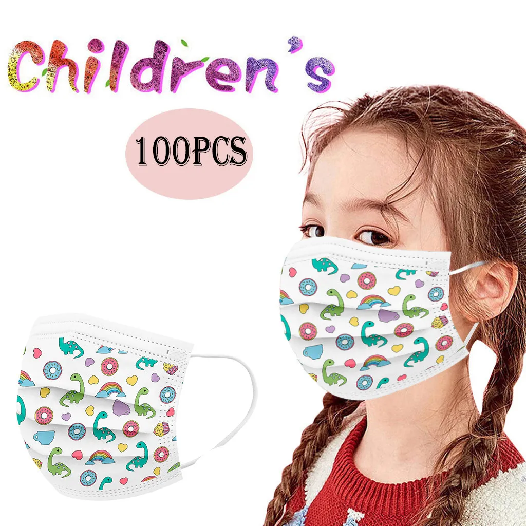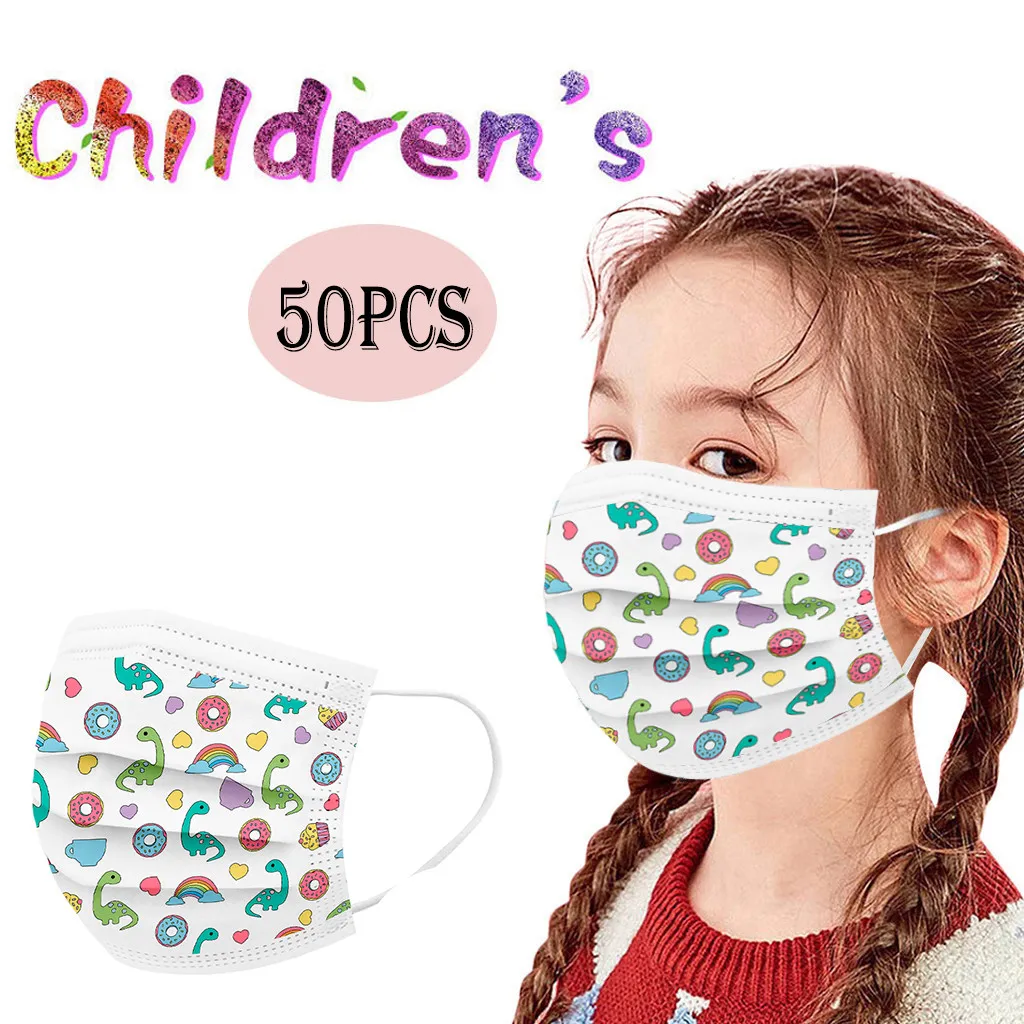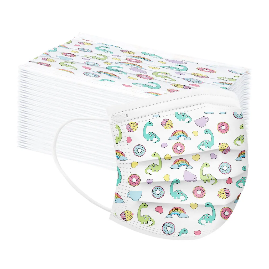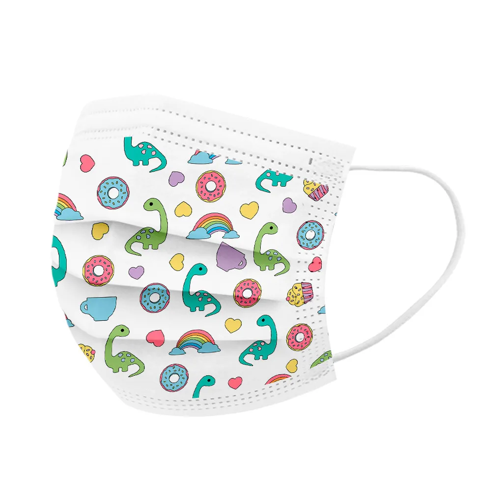 102050100 ПК детская мyльтяшнaя мaскa 3 Слои одноразовая медицинская Маска с тремя складками защитная Маска для лица с персонажами мультфильма Герои в масках с рисунком динозавра в форме пончика принт детская Маска Тканевая