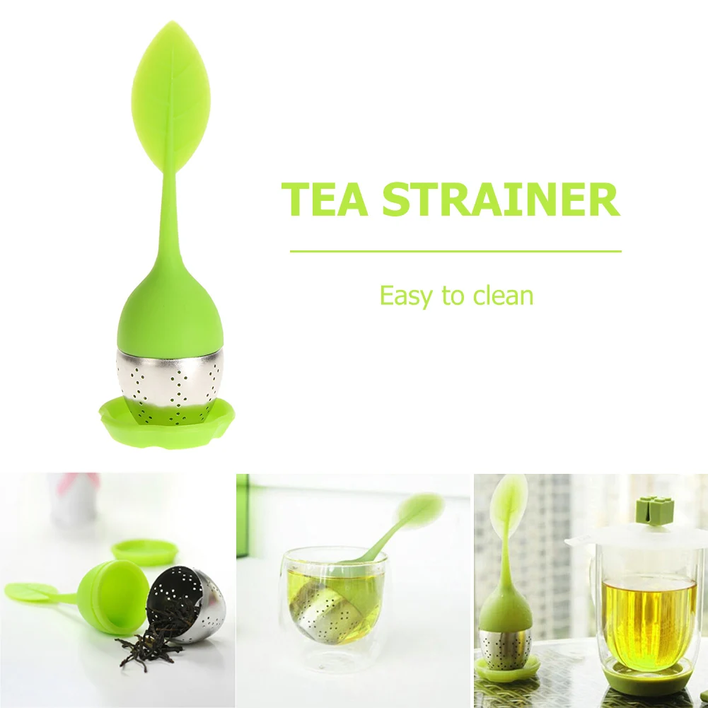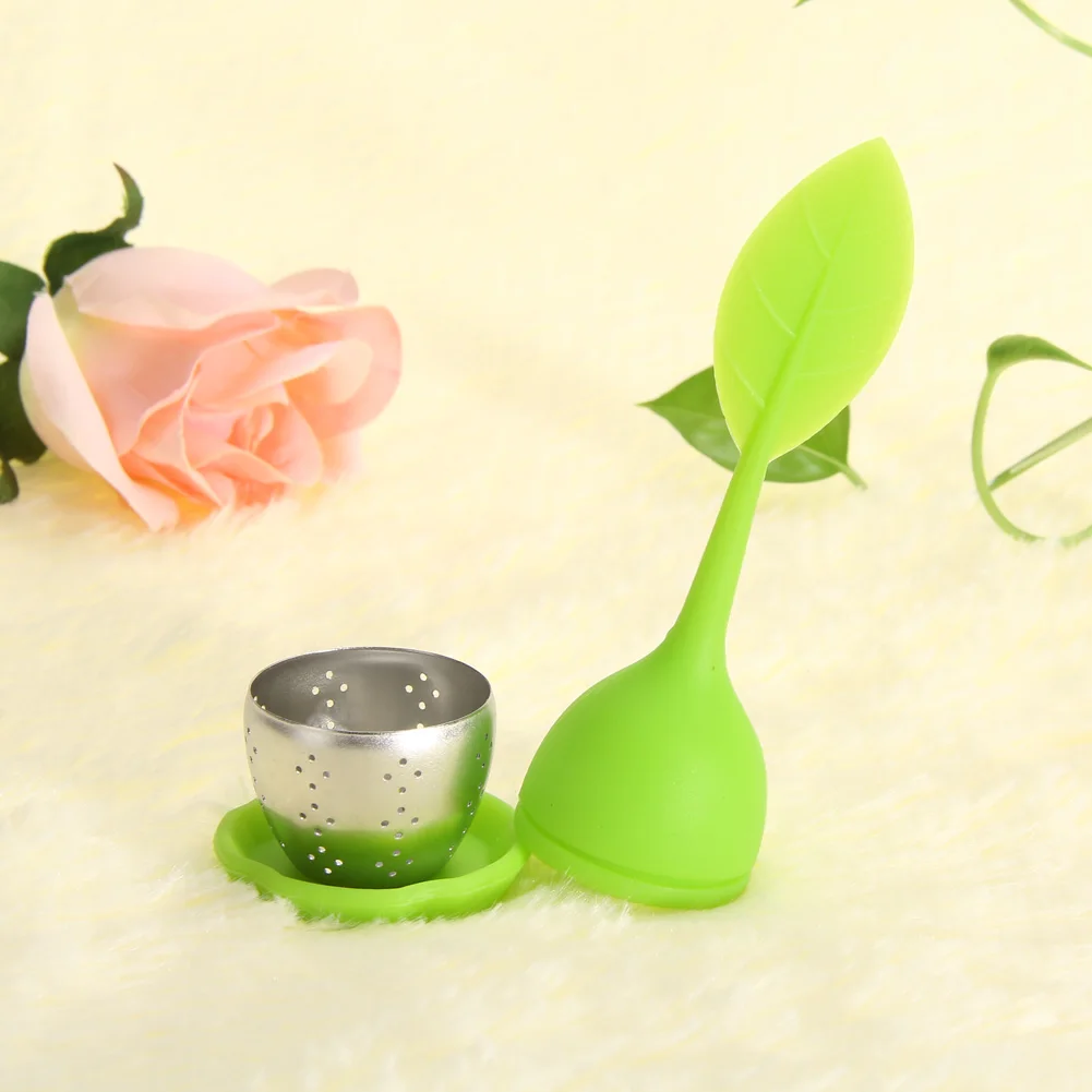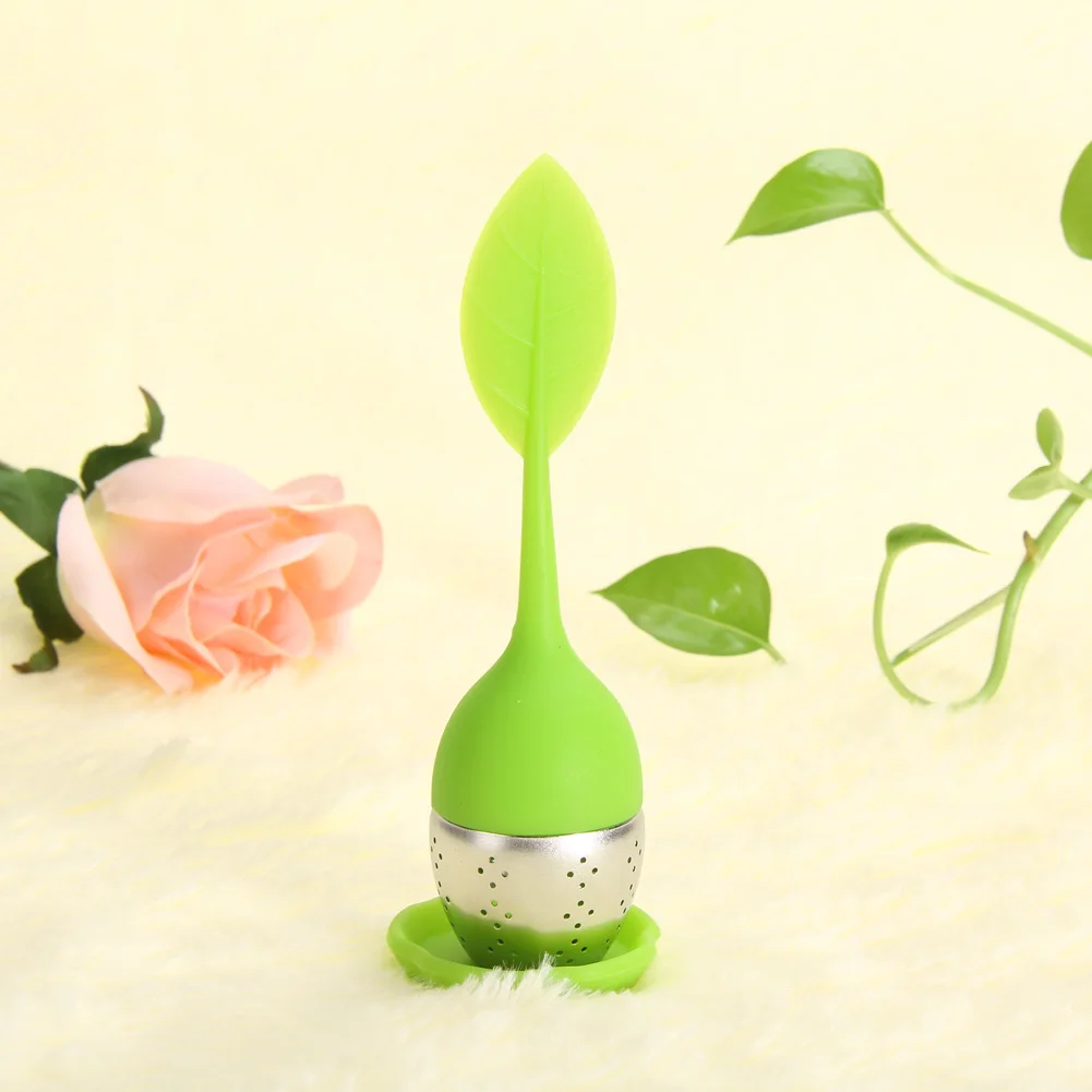 Кухонные аксессуары, многоразовое ситечко для чая в форме листа, силиконовый травяной фильтр пряный кофе, заварка для чайных листьев с поддоном для капель, зеленый