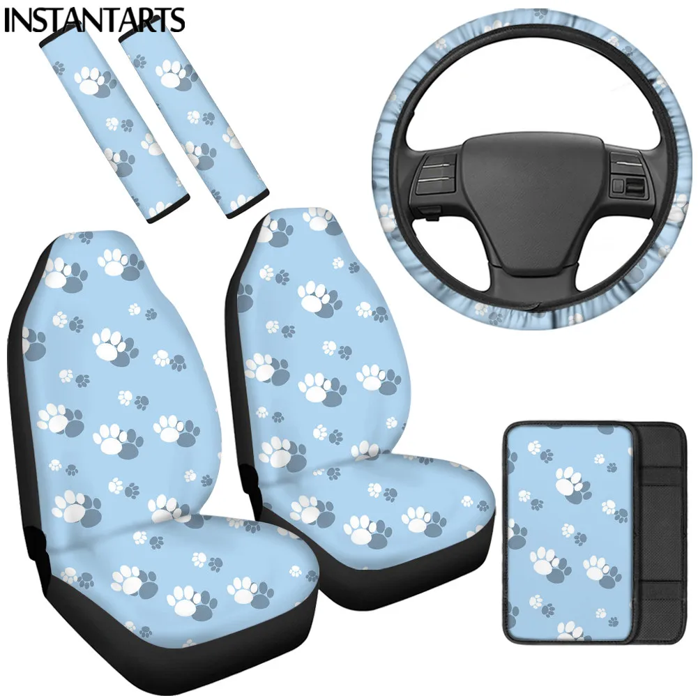 Удобные чехлы на сиденья автомобиля INSTANTARTS с милым рисунком лапы чехол на руль нескользящий центральный чехол для автомобиля наплечный ремень