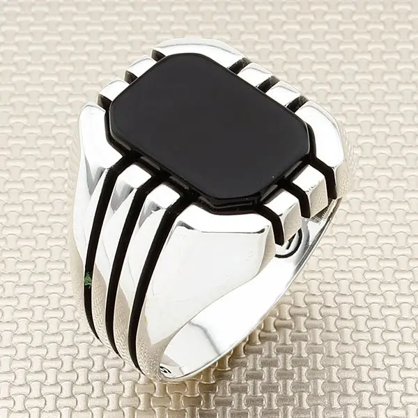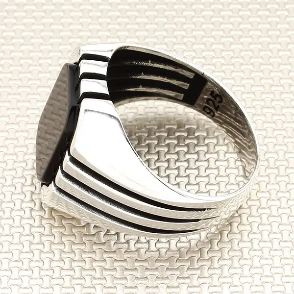 Мужское серебряное кольцо из черного оникса с тремя линиями