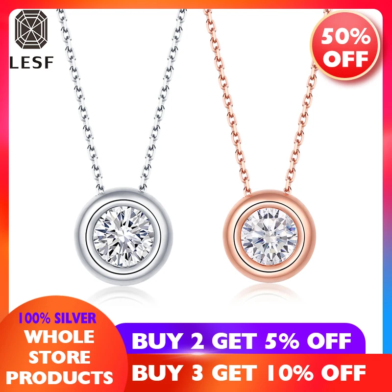 LESF ювелирные изделия 925 Серебряное кольцо с алмазом Moissanites 1 карат Круглый классическое ожерелье цепочка 45 см