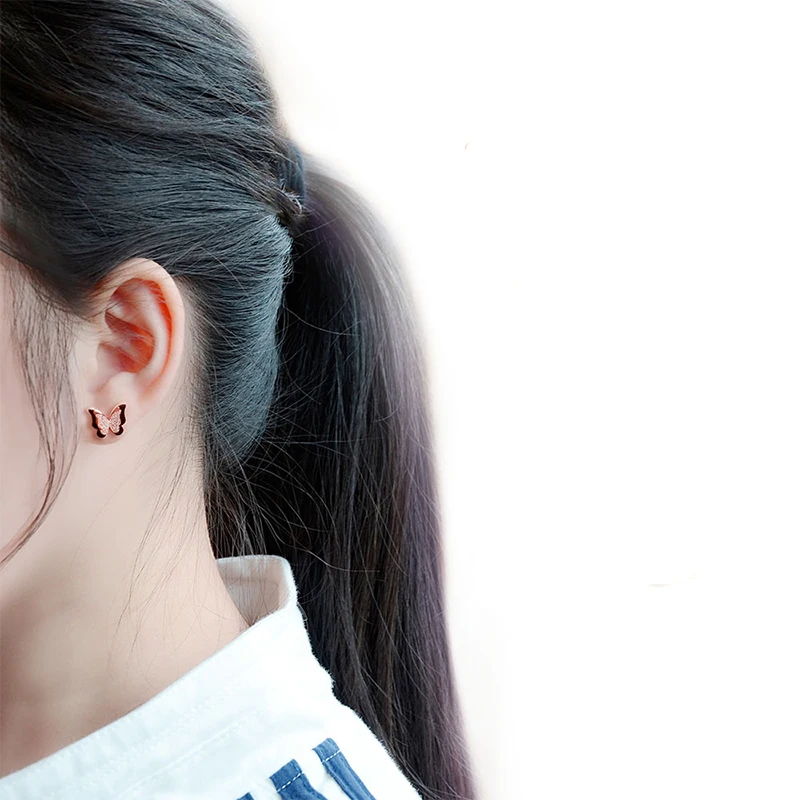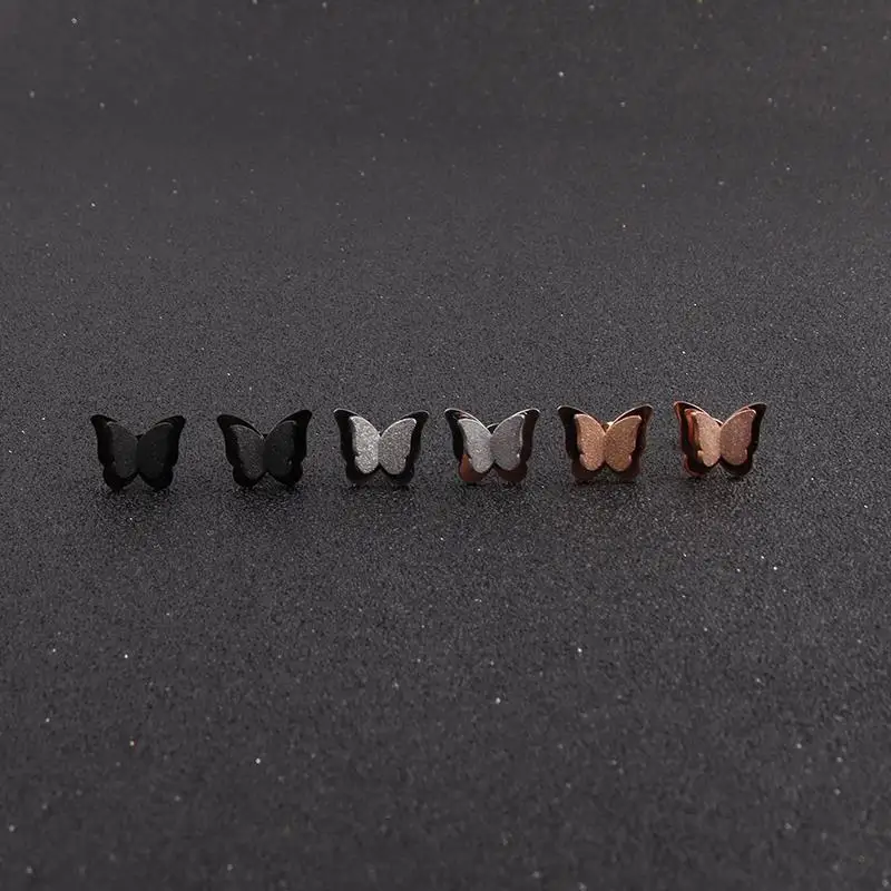 1 пара 3D бабочка из нержавеющей стали, серьги со шпилькой, для женщин, выполненная Ювелирная и черного цветов, в подарок, серьги