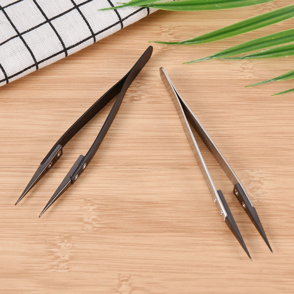 Черные пинцеты из нержавеющей стали, термостойкие, непроводящие, керамические, с заостренным кончиком, ручные инструменты сделай сам
