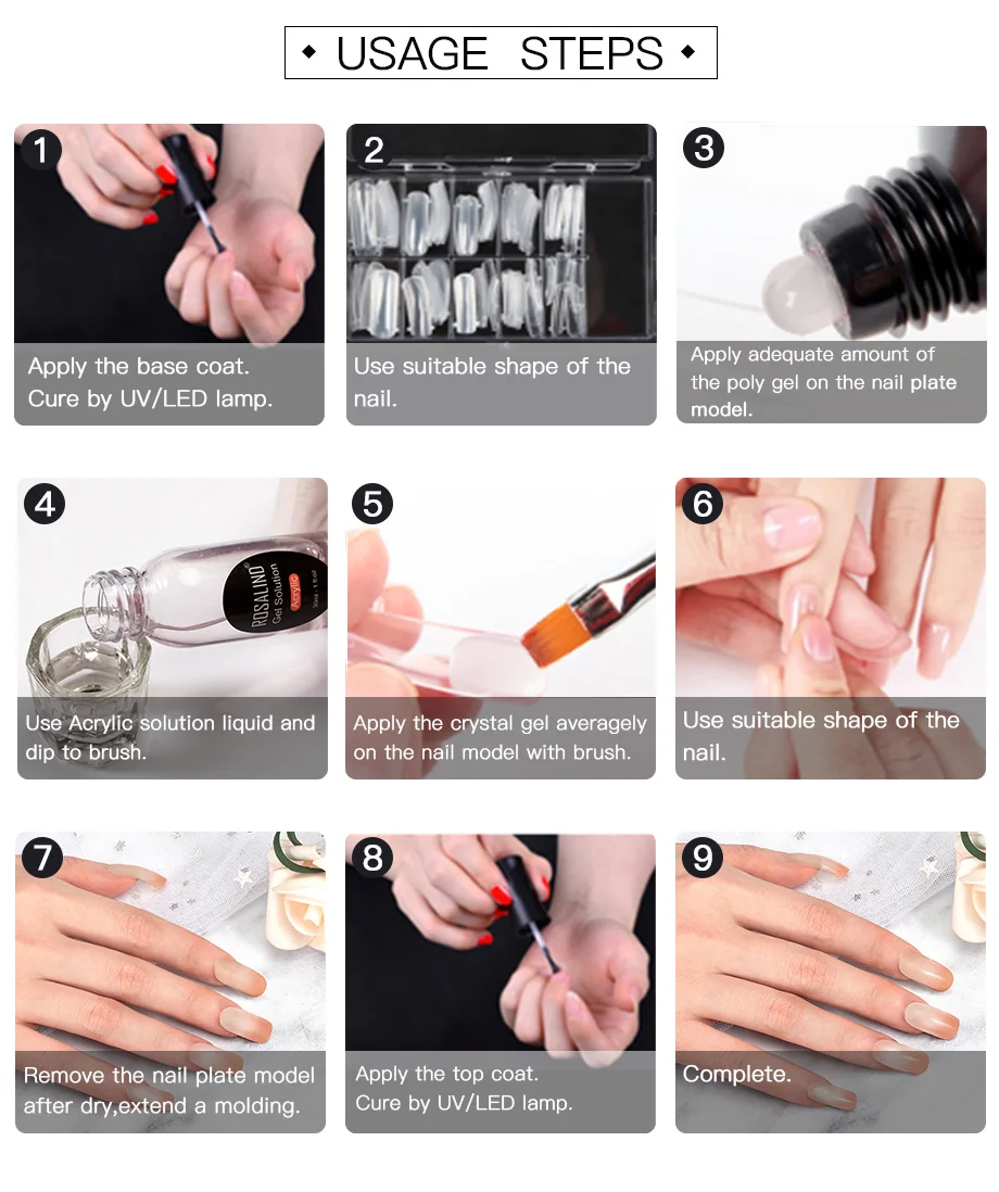 Цветной полигель ROSALIND для наращивания ногтей гибридные Лаки полигель для ногтей отмачиваемый все для маникюра 1530 мл наращивание ногтей