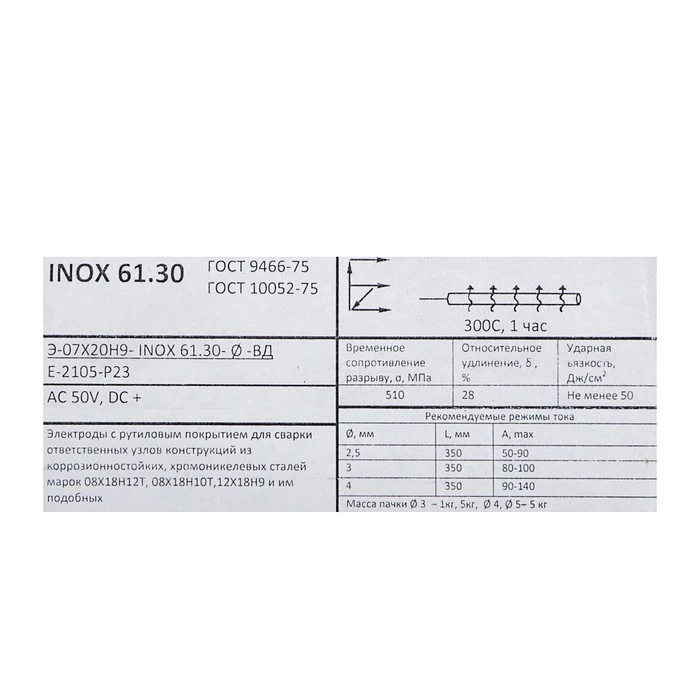 Электроды "УЭЗ", INOX 61.30, d=3 мм, 5 шт., аналог ОК 61.30, для сварки нержавеющих сталей 4691554