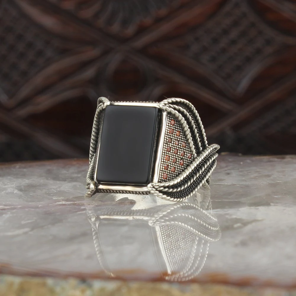 Мужские кольца с турецким агатом Ye men e Aqeeq из серебра 925 пробы