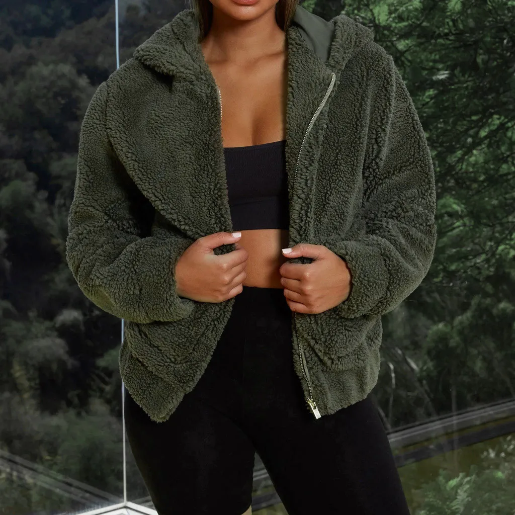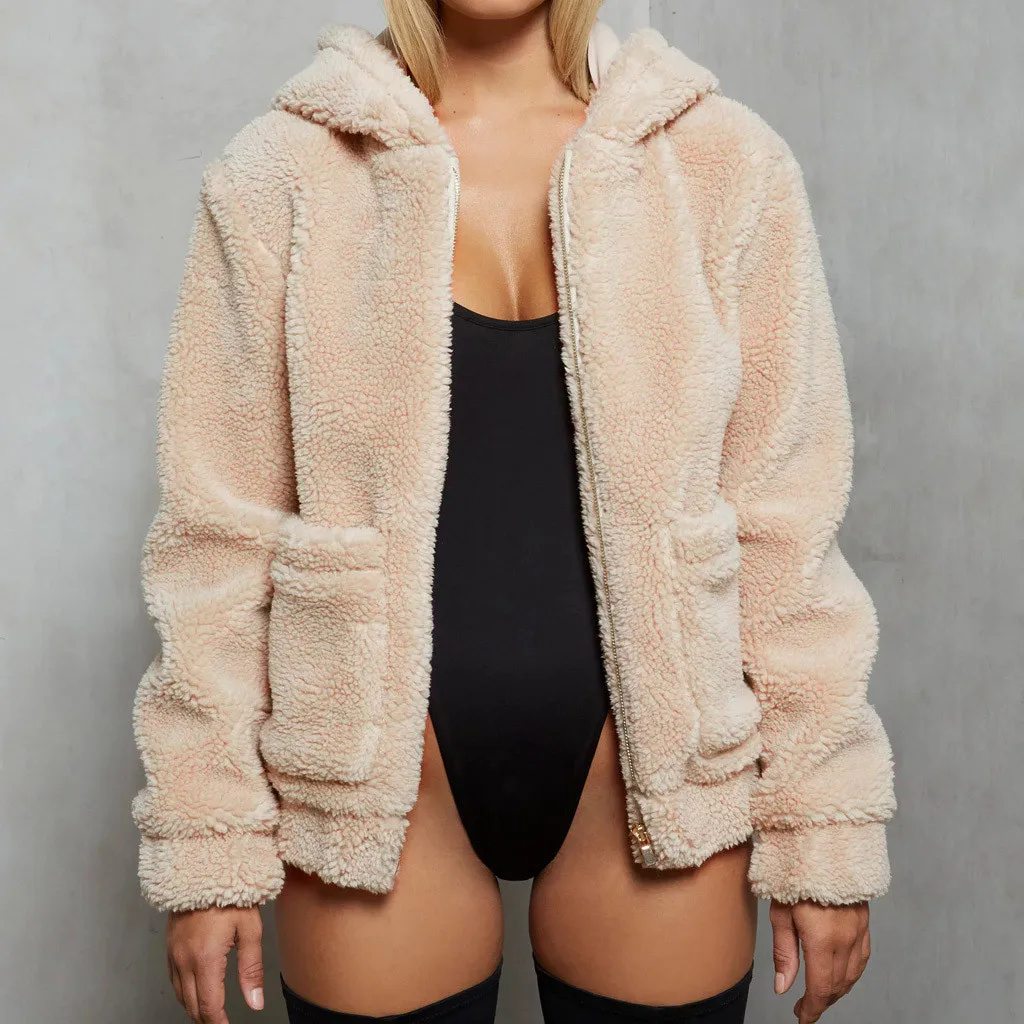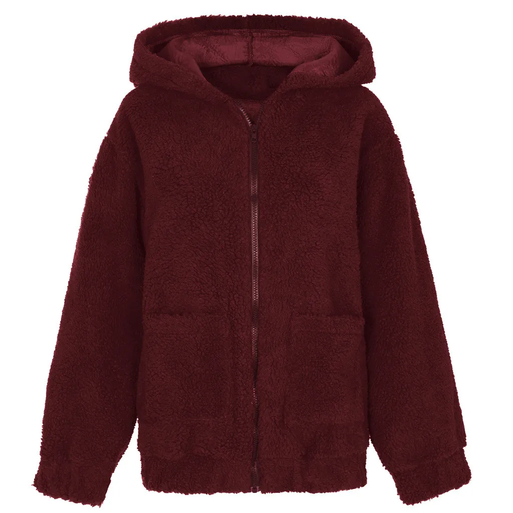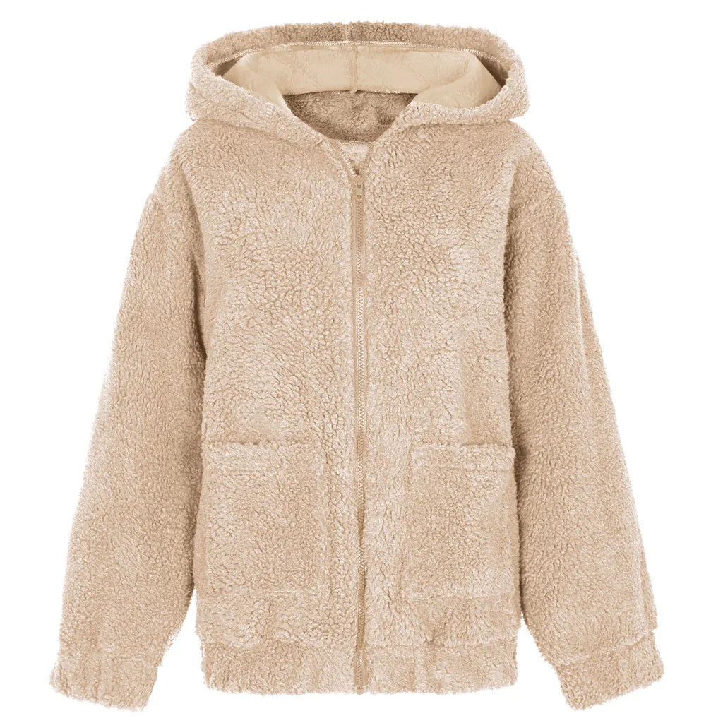 Женские пальто из искусственного меха зимняя 2021 размера плюс для женщин пальто с отложным воротником, пальто флис пушистое подкладкой из искусственной овечьей шерсти с капюшоном и застежкой-молнией Теплая верхняя одежда, куртка