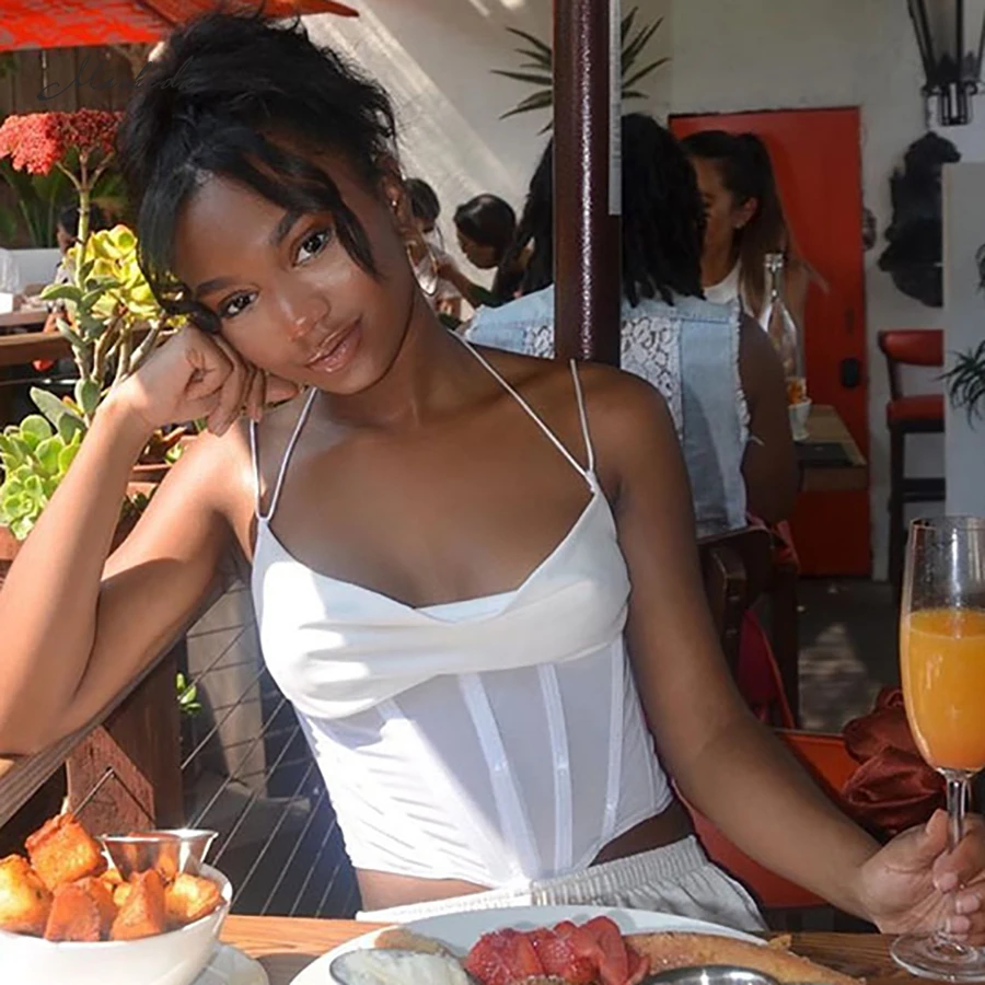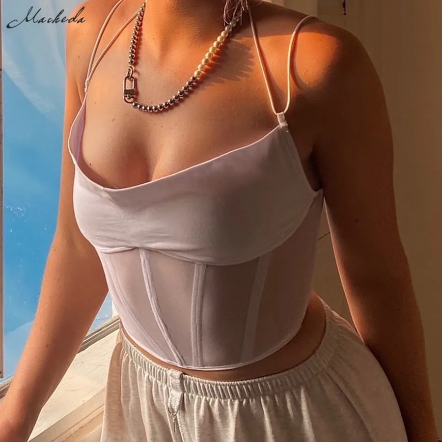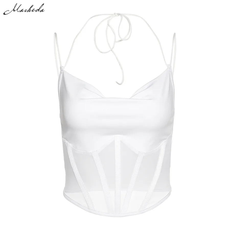 Кроп-топ Macheda женский без рукавов, модная пикантная белая облегающая одежда, уличная одежда 2 года, повседневный Топ, осень 2020