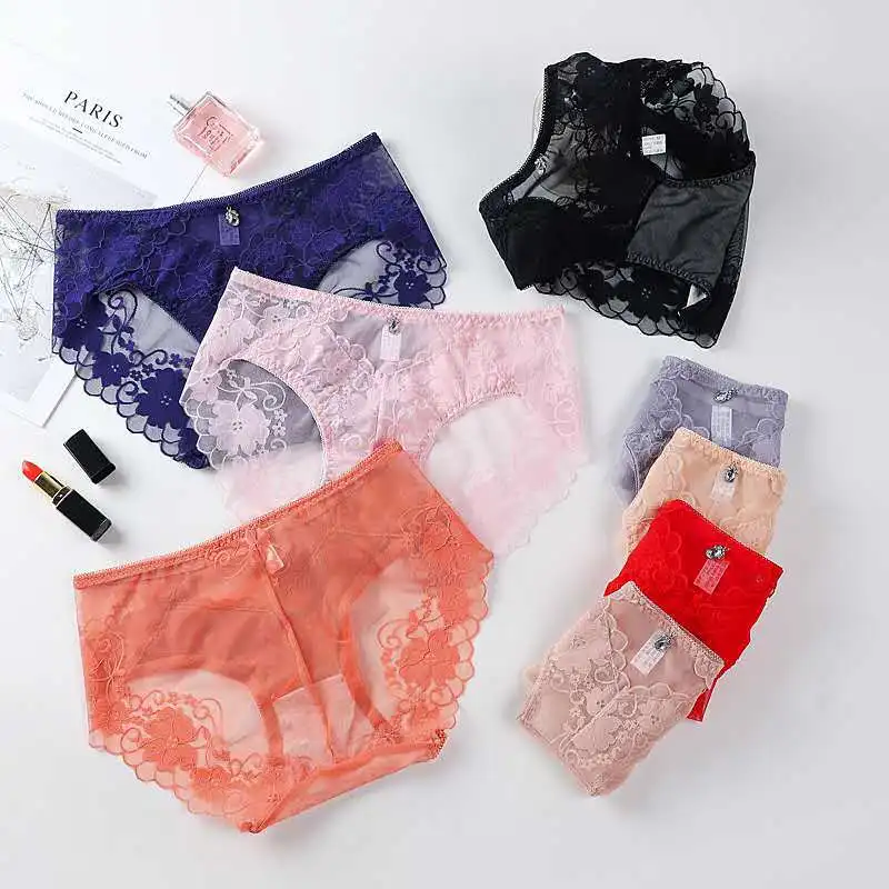 Нижнее белье женское кружевное, прозрачные эластичные дышащие сетчатые мягкие тонкие Трусы средней длины