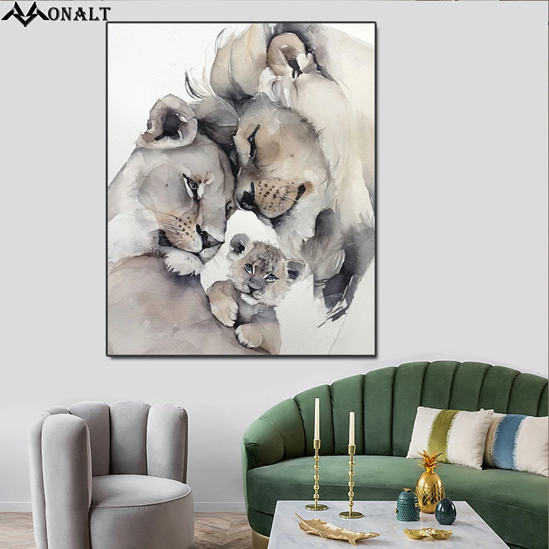 Простой современный холст с принтом семьи льва, плакат и принты, художественный декор для гостиной, Настенная картина с животными, абстрактная картина маслом Печать прикроватной фотографии HD на заказ