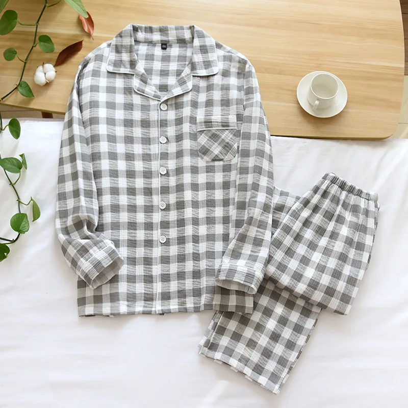 Пары пижамный комплект с длинным рукавом, футболка с длинными рукавами и штаны, пижамы для женщин и мужчин, одежда для отдыха из хлопка и креповой ткани, одежда для сна из мягкой дышащей ткани, одежда для сна