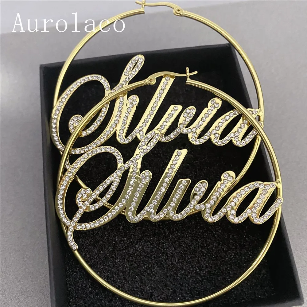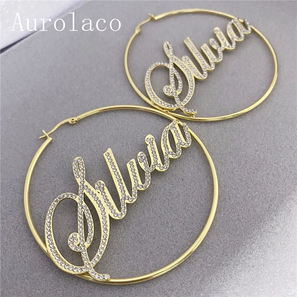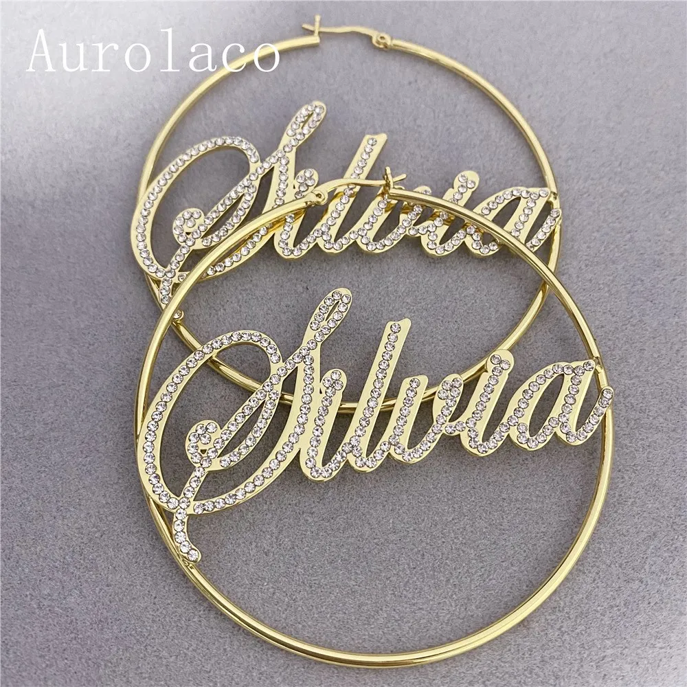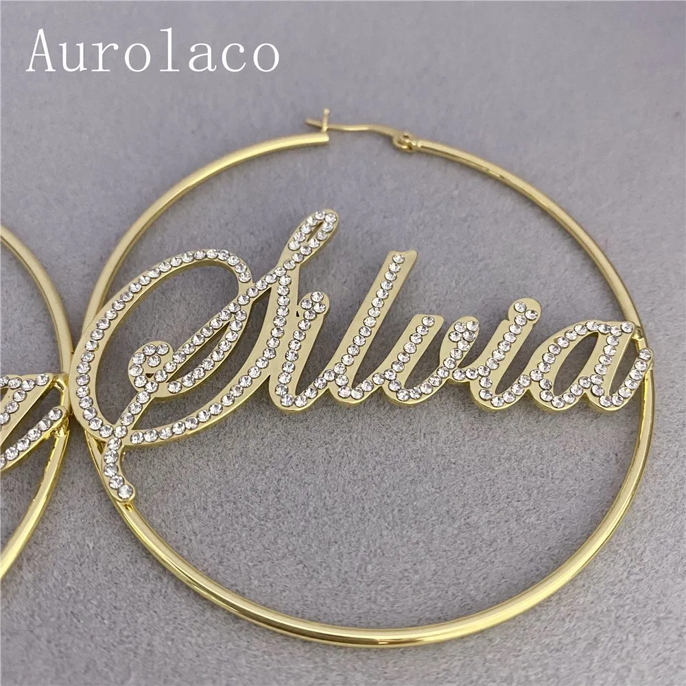 AurolaCo серьги с именем на заказ с бриллиантами на заказ Bling обруч серьги Индивидуальные ювелирные изделия для женщин рождественские подарки
