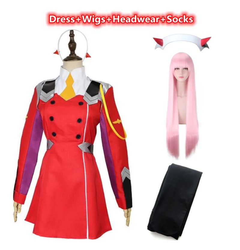 Костюм для косплея 02 Zero Two, Женский костюм для косплея, полный комплект, парики