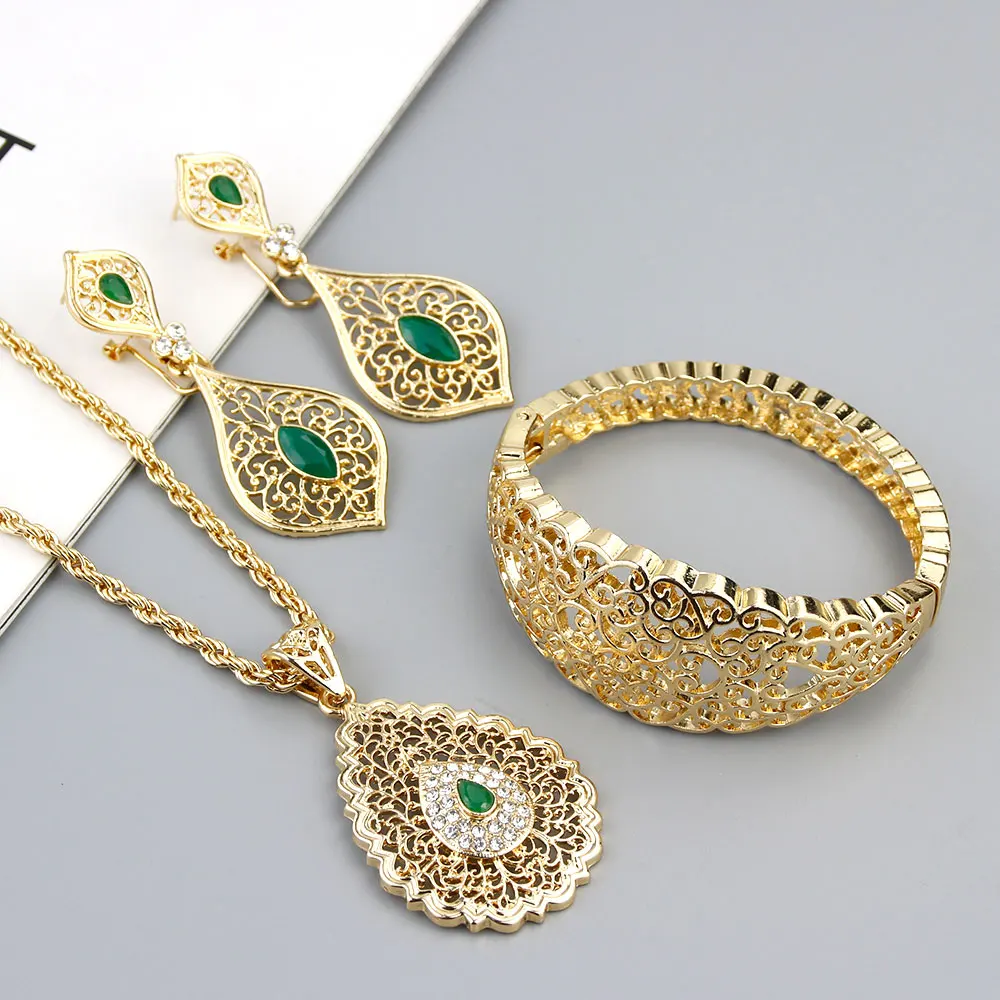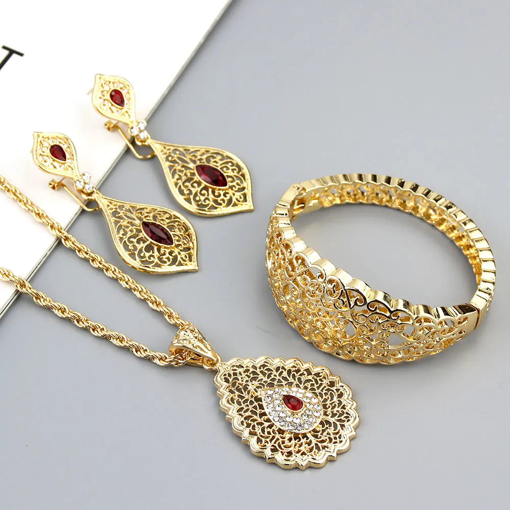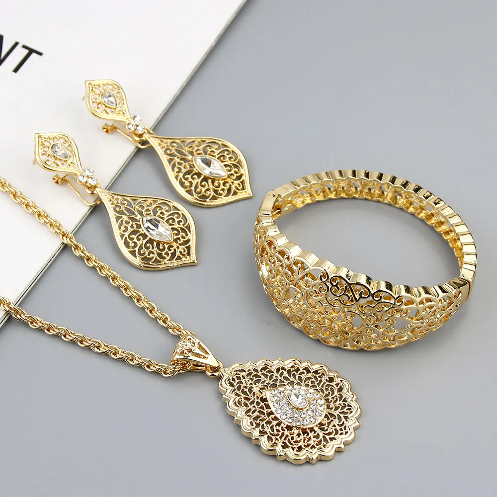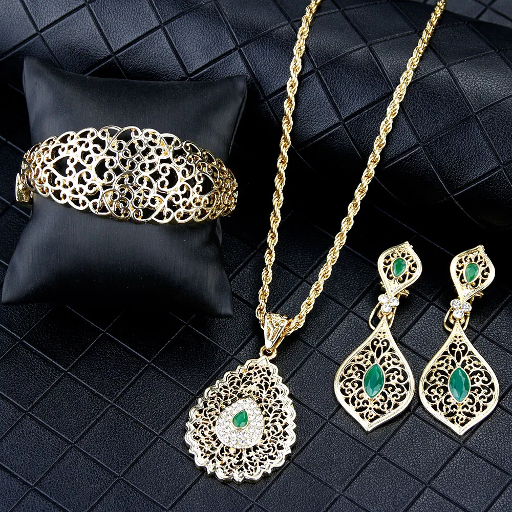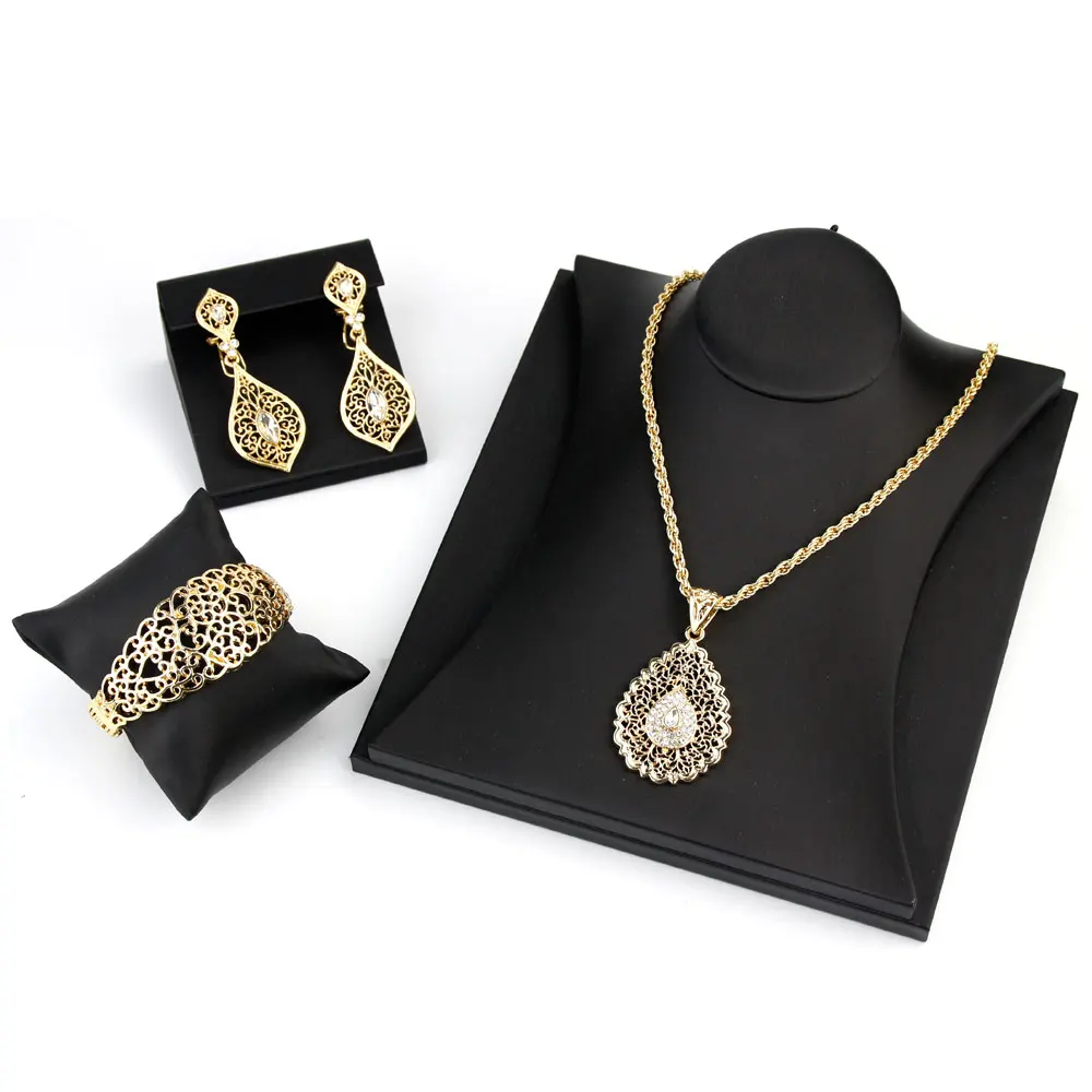 Neovisson элегантные Алжир Свадебные Ювелирные наборы для женщин, серьги ожерелье, нержавеющая сталь, Браслет-манжета Арабский Браслет Золото Цвет Bijoux (украшения своими руками) невесты подарок