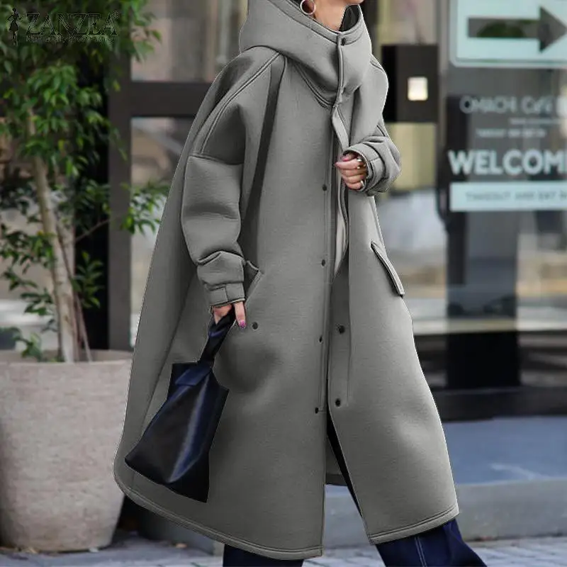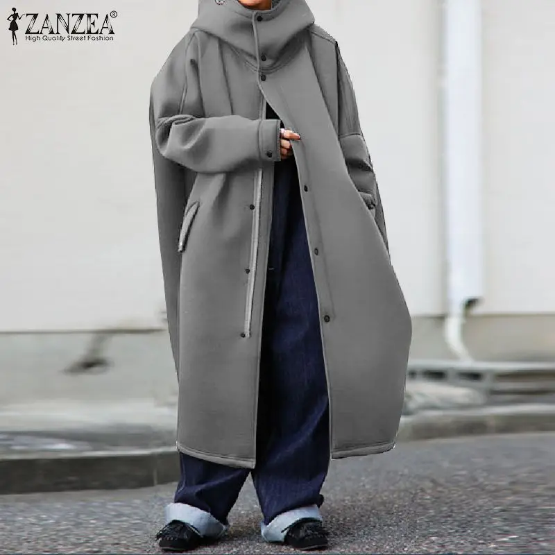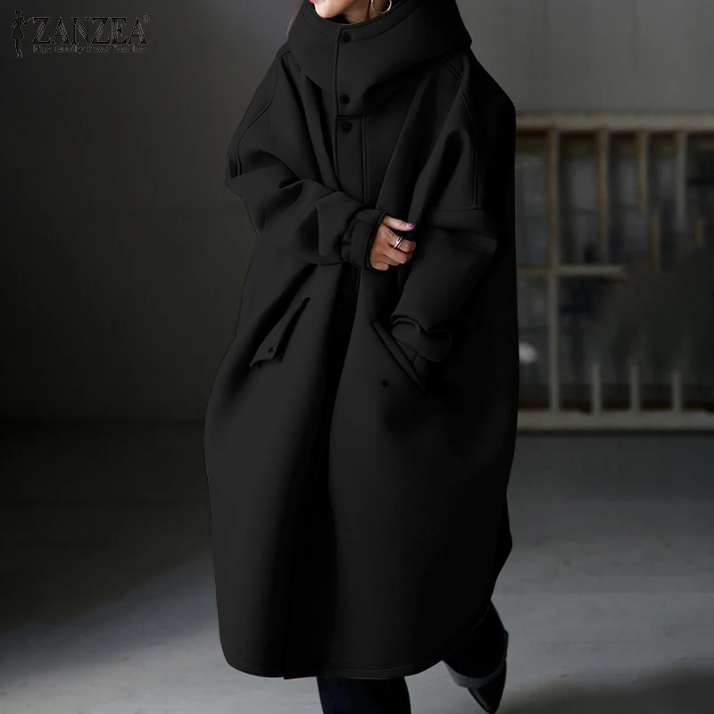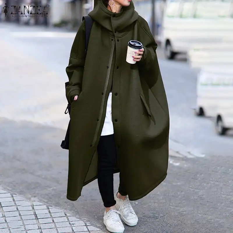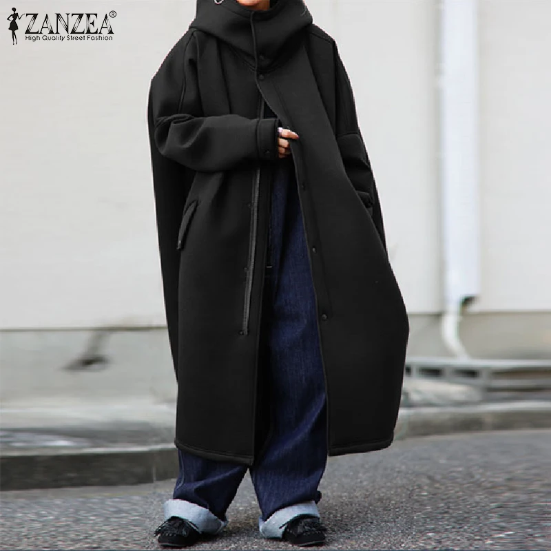 Женские одноцветные куртки ZANZEA 2020 элегантный с высоким, плотно облегающим шею воротником; Пальто на каждый день длинный рукав "летучая мышь" мешковатые верхняя одежда женская обувь с ремешком на пряжке верхняя одежда размера плюс
