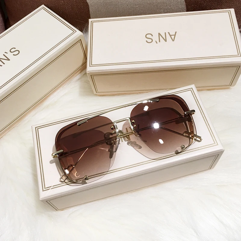 Женские солнцезащитные очки без оправы Uv400, коричневые и розовые ...