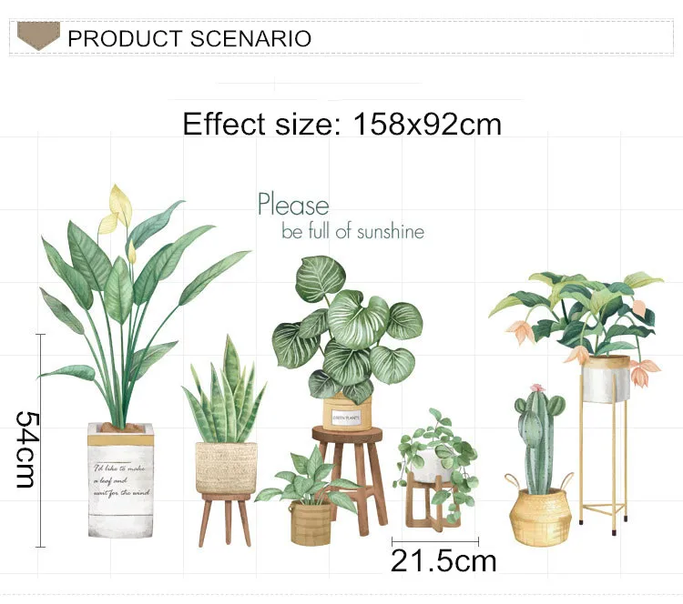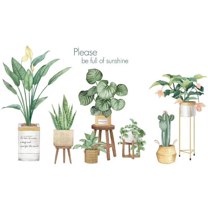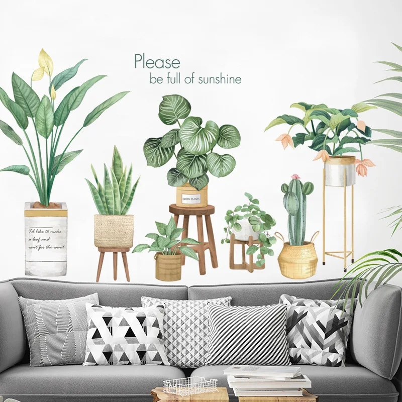 Зеленый Стикеры для растений на стену Гостиная Nordic Стиль Спальня украшения эстетическое "сделай сам" Art Наклейки самоклеящиеся обои