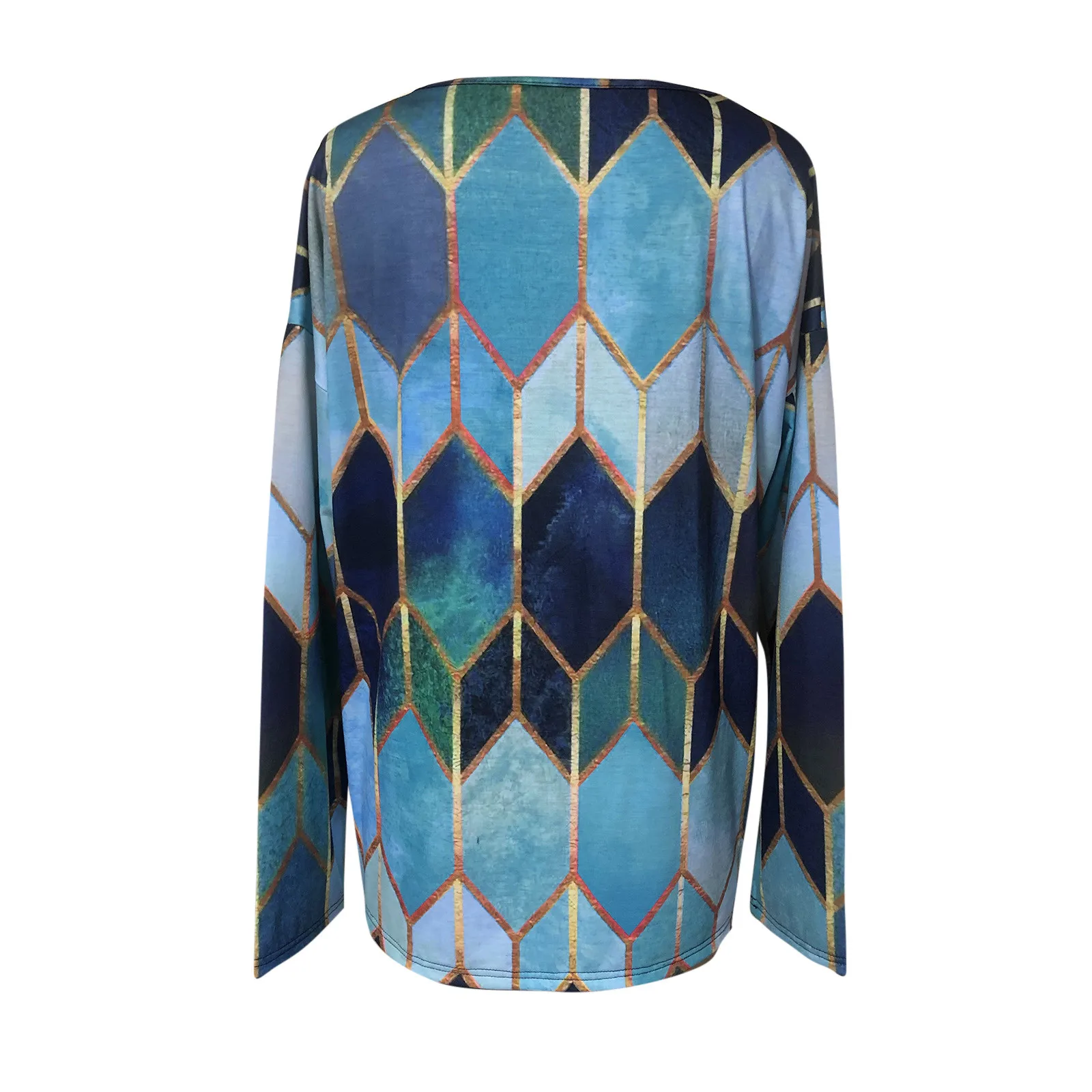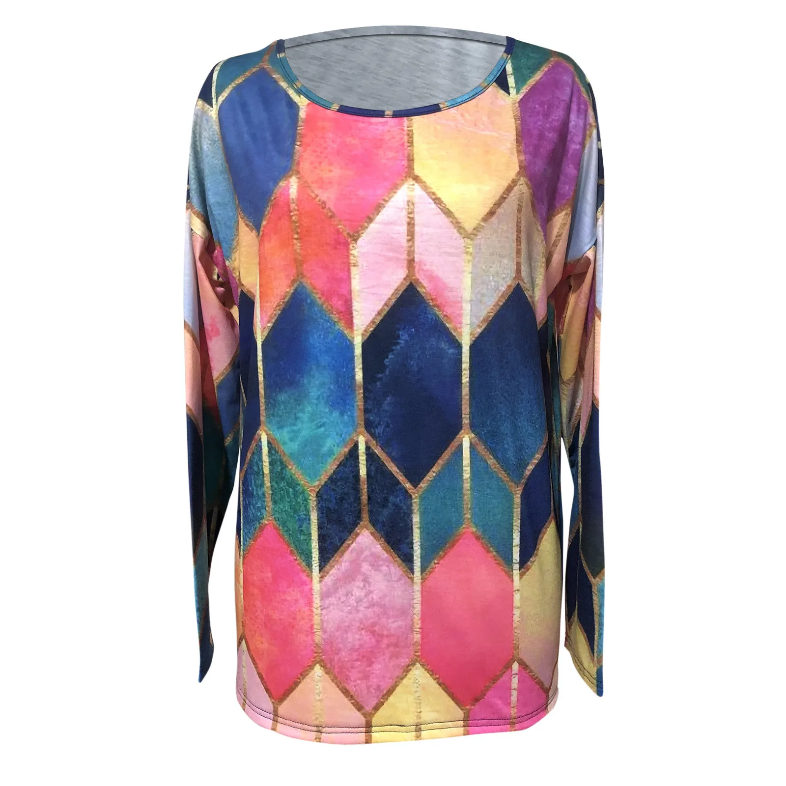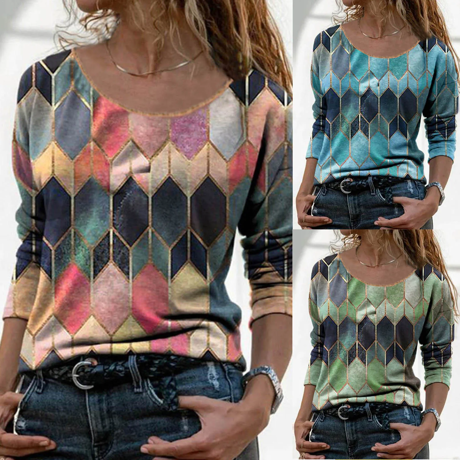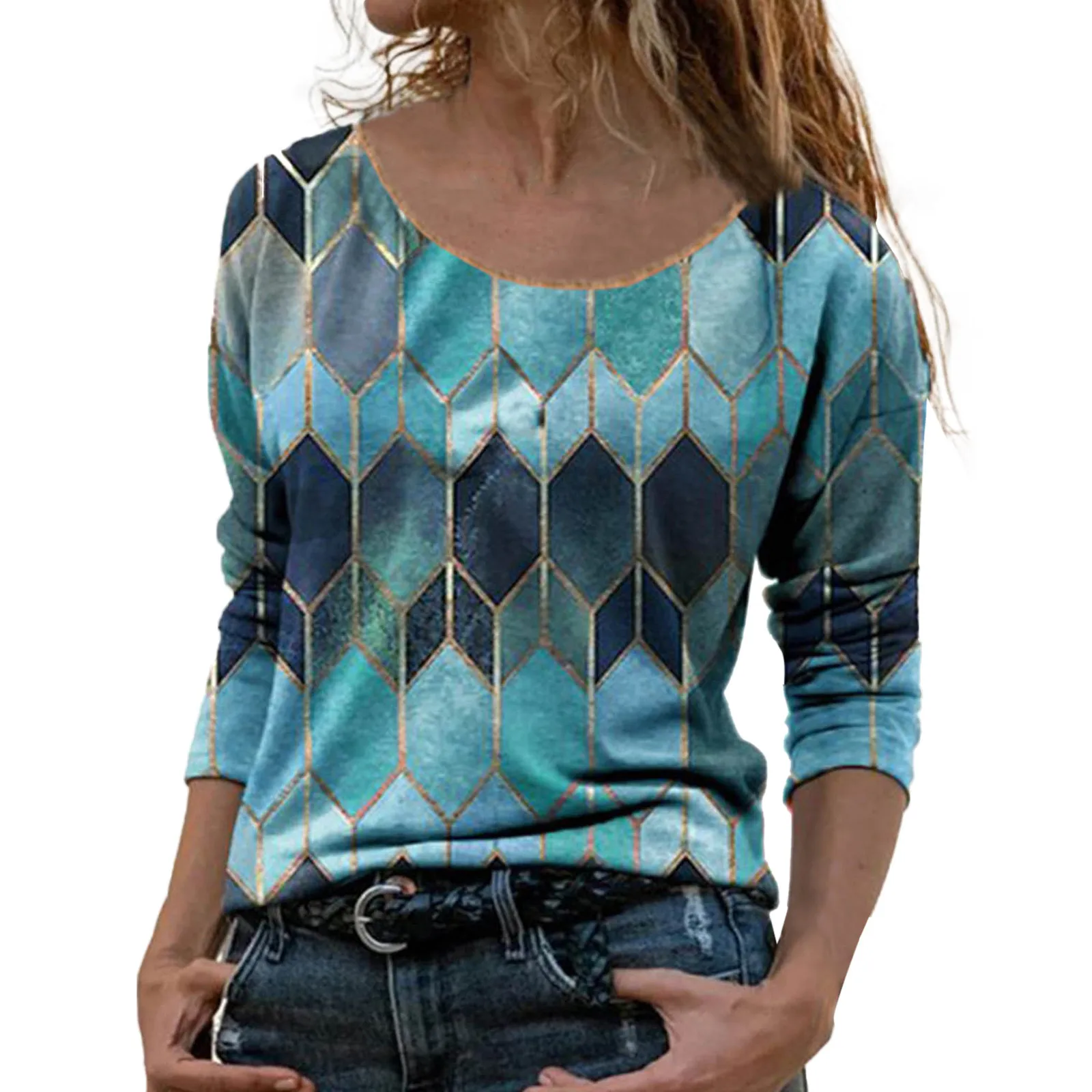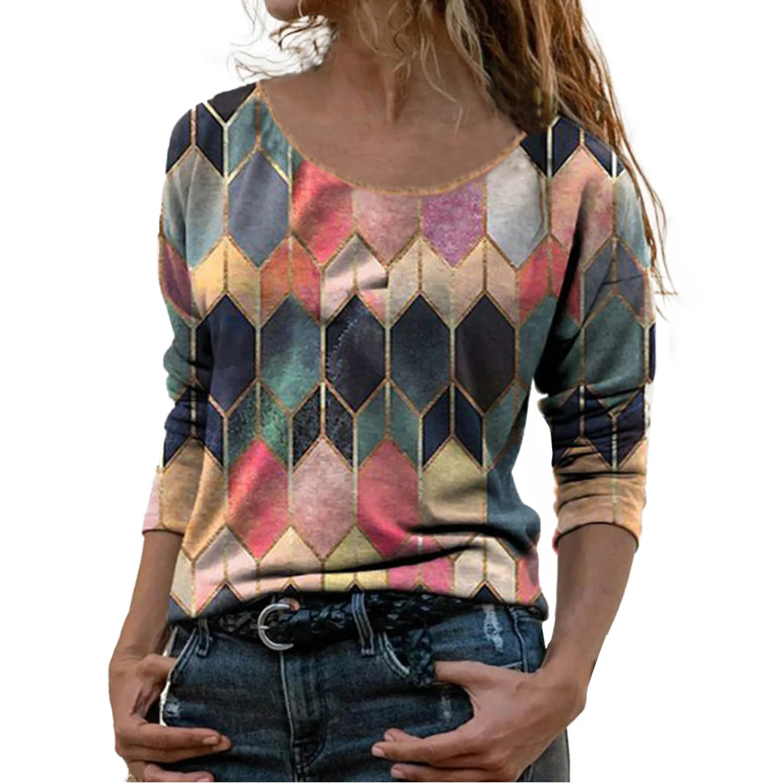 Модная женская Лоскутная рубашка с длинными рукавами и круглым вырезом в стиле ретро